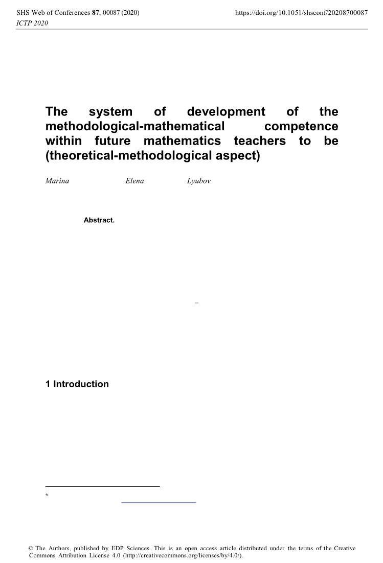 出处:Marina Ovchinnikova,Elena Linnik,Lyubov Shilova. The system of development of the methodological-mathematical competence within future mathematics teachers to be (theoretical-methodological aspect)[J]. SHS Web of Conferences,2020,87: