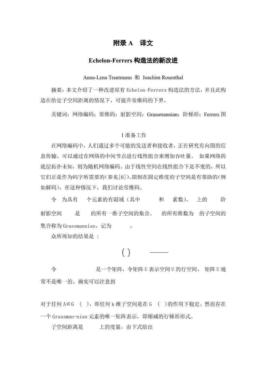 Echelon-Ferrers构造法的新改进外文翻译资料