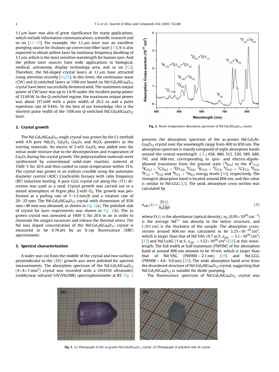Nd:Gd3AlGa4O12晶体生长、光谱及1106nm被动调Q激光
