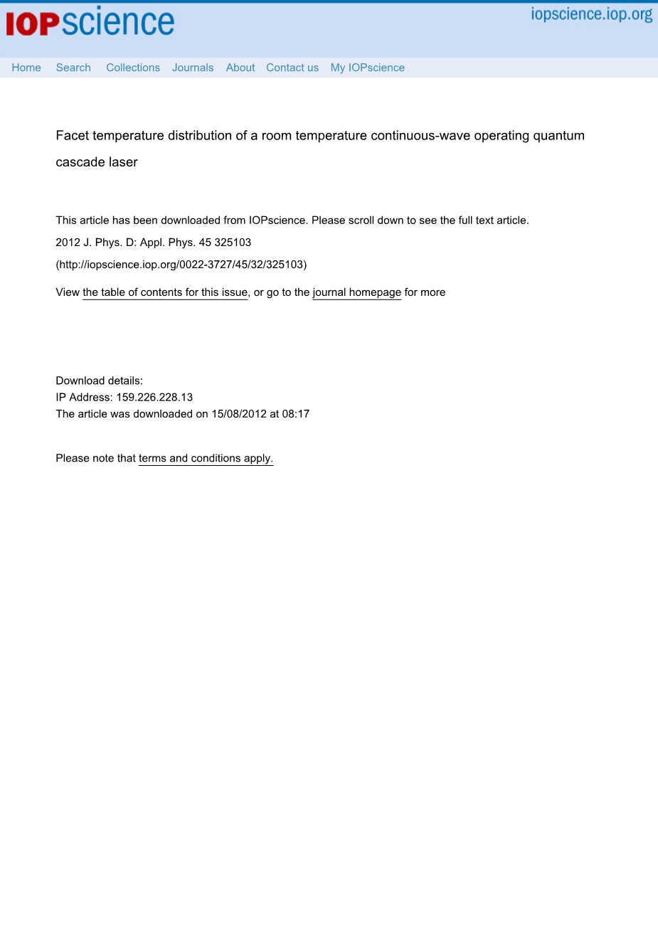 室温连续波运行条件下量子级联激光器的温度分布外文翻译资料