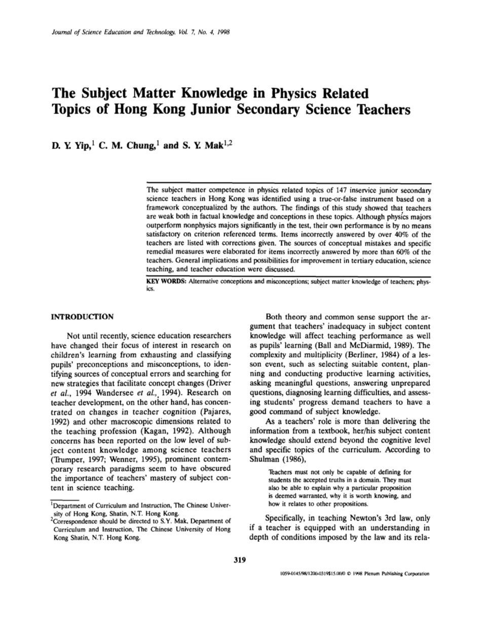 - Y. Yip, 1 C. M. Chung, 1 and S. Y. Mak 1,2 Journal of Science Education and Technology,