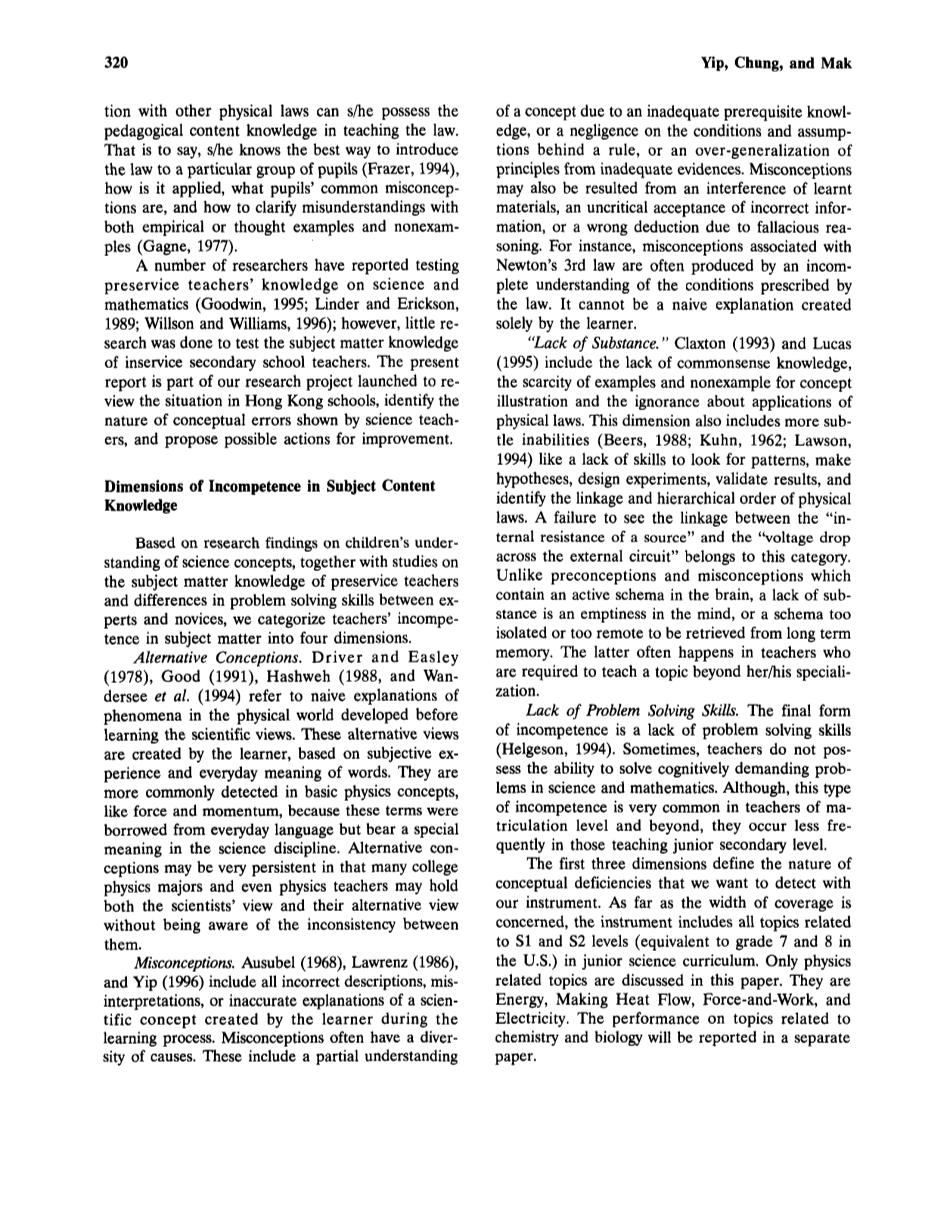 Not until recently, science education researchers have changed their focus of interest in research on childrens learning from exhausting and classifying pupils preconceptions and misconceptions, to identifying sources of conceptual errors and searching for new strategies that facilitate concept changes (Driveret al., 1994 Wandersee et al., 1994). Research on teacher development, on the other hand, has concentrated on changes in teacher cognition (Pajares,1992) and other macroscopic dimensions related to the teaching profession (Kagan, 1992). Although concerns has been reported on the low level of subject content knowledge among science teachers