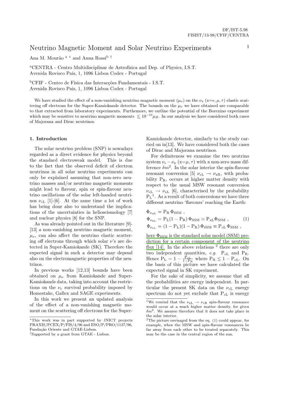 出处:Ana M. Mouro and Anna Rossi,Neutrino Magnetic Moment and Solar Neutrino Experiments [J], Nuclear Physics B(Proc.Suppl.)77(1999)89-92