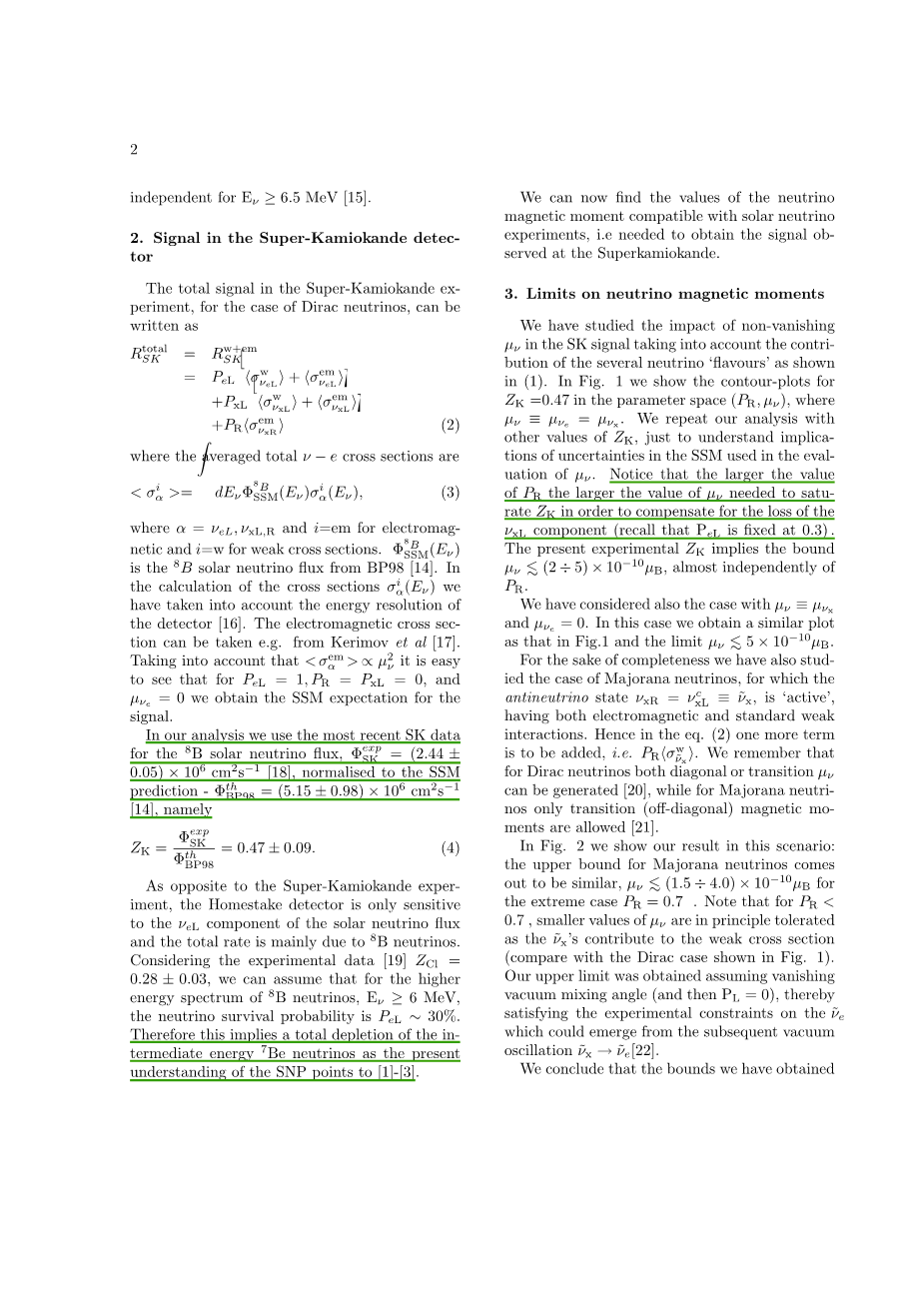here is the standard solar model (SSM) prediction for a certain component of the neutrino flux [14]. In the above relations[1] there are only two independent quantities, e.g. and . Hence where 1. On the basis of this picture we have calculated the expected signal in SK experiment.