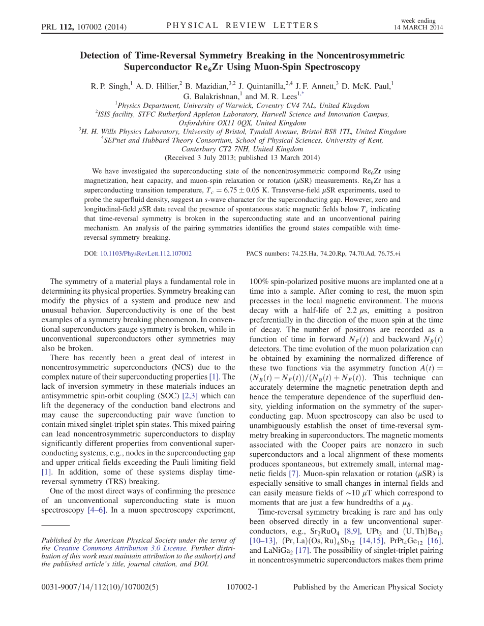原文作者 R. P. Singh,1 A. D. Hillier,2 B. Mazidian,3,2 J. Quintanilla,2,4 J. F. Annett,3 D. McK. Paul,1