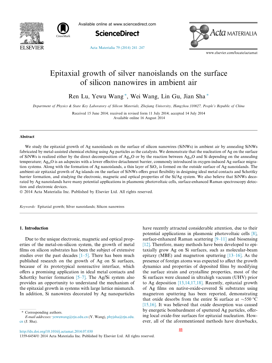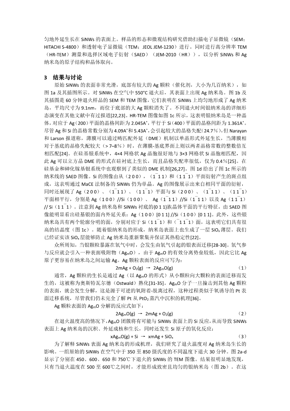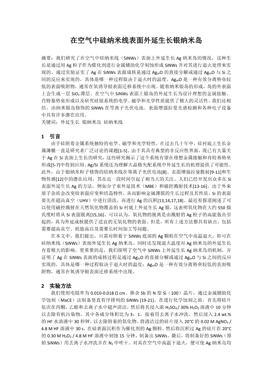 在空气中硅纳米线表面外延生长银纳米岛外文翻译资料
