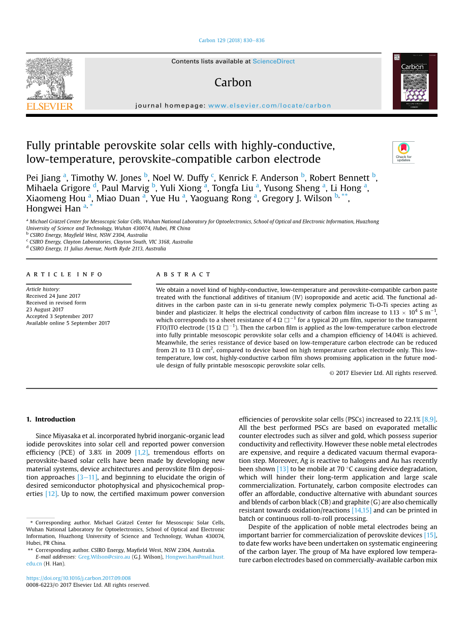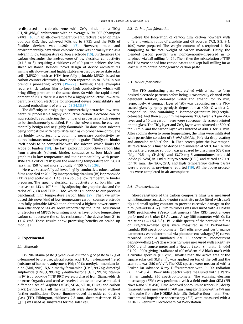 印刷型钙钛矿太阳能电池中具有高导电、低温、钙钛矿相 容作用的碳电极外文翻译资料