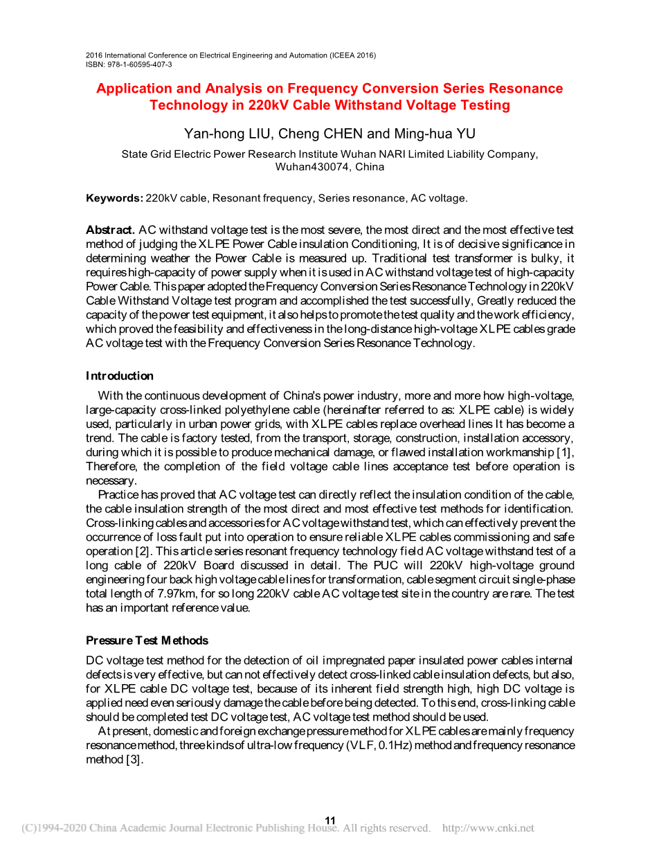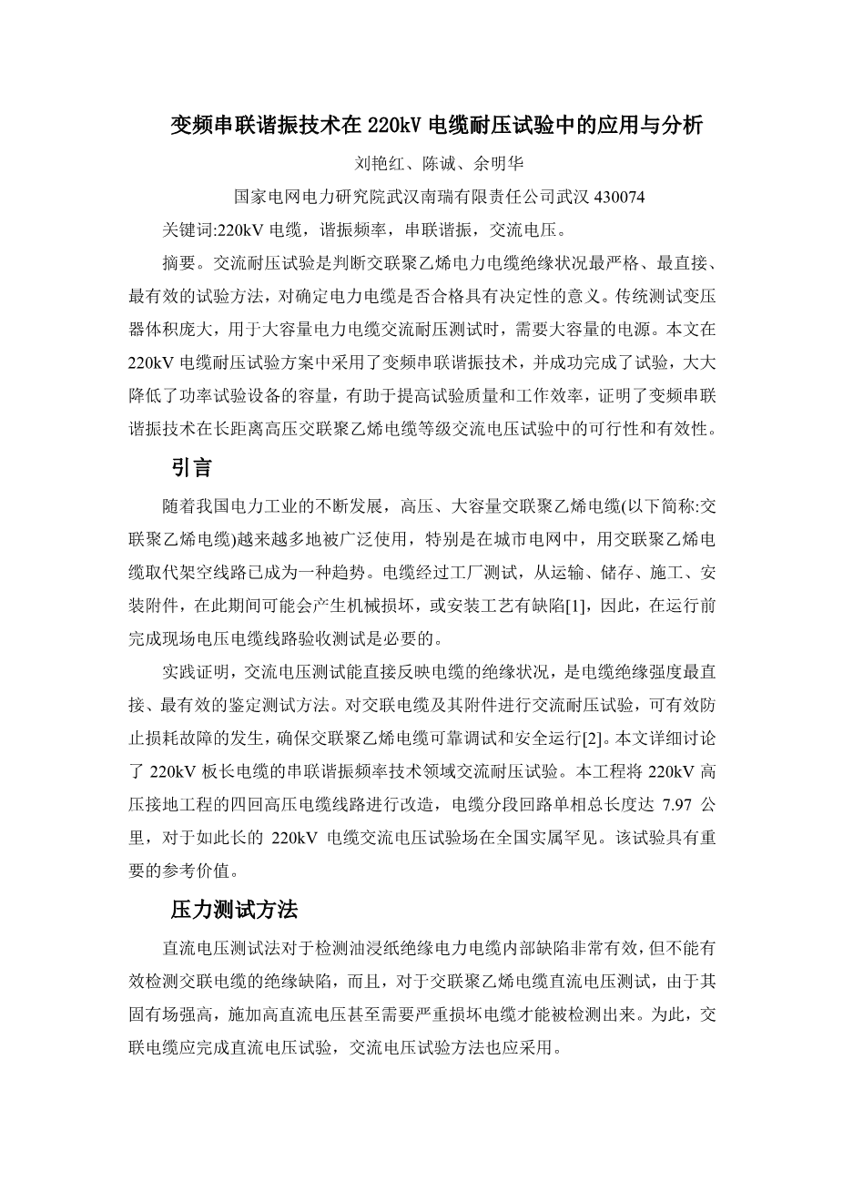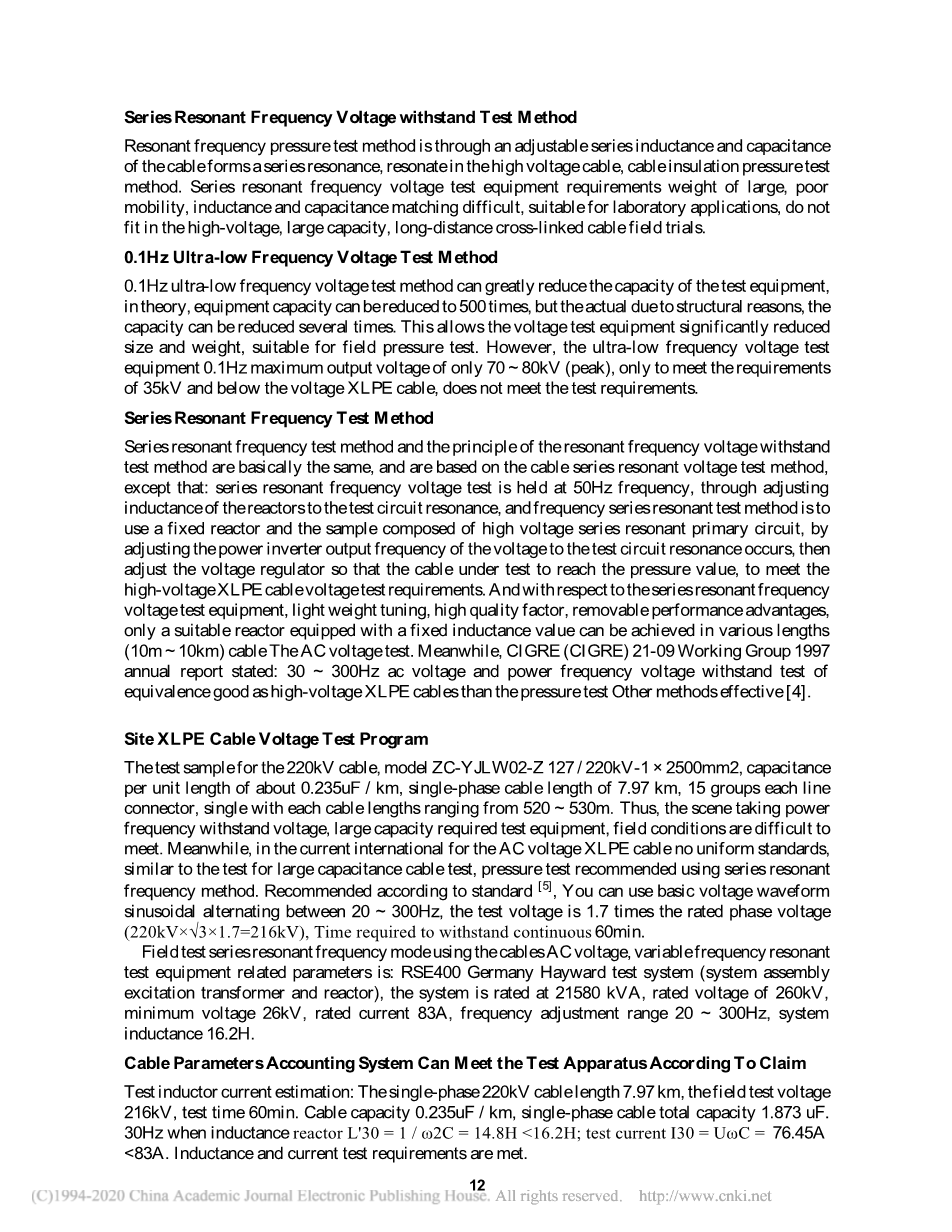 变频串联谐振技术在220kV电缆耐压试验中的应用与分析外文翻译资料