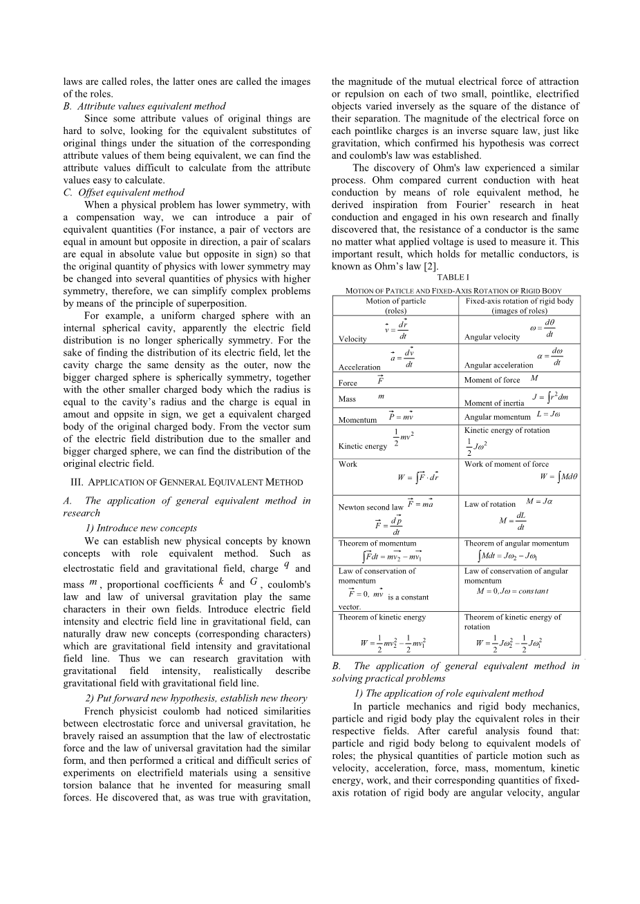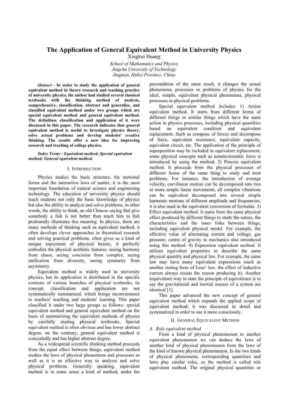 一般等效法在大学物理中的应用外文翻译资料