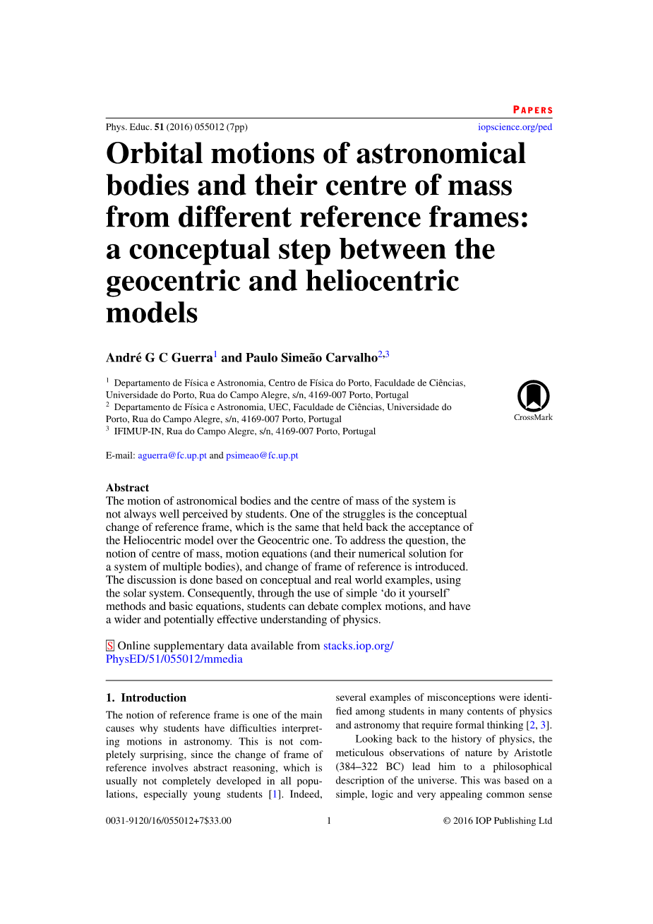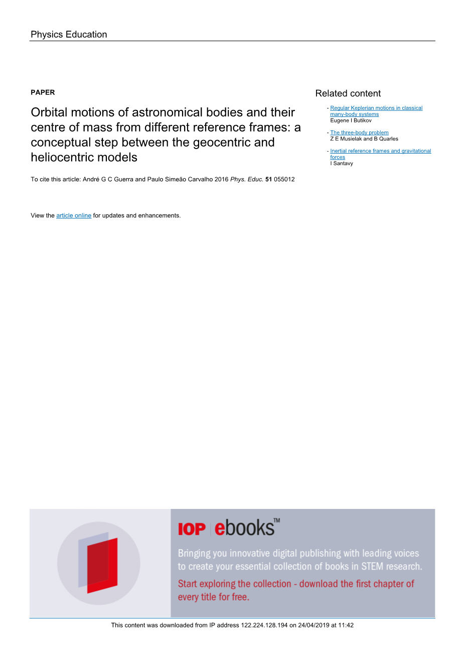 天体的轨道运动和它们在不同参照系中的质心:地心说和日心说模型之间的概念步骤外文翻译资料