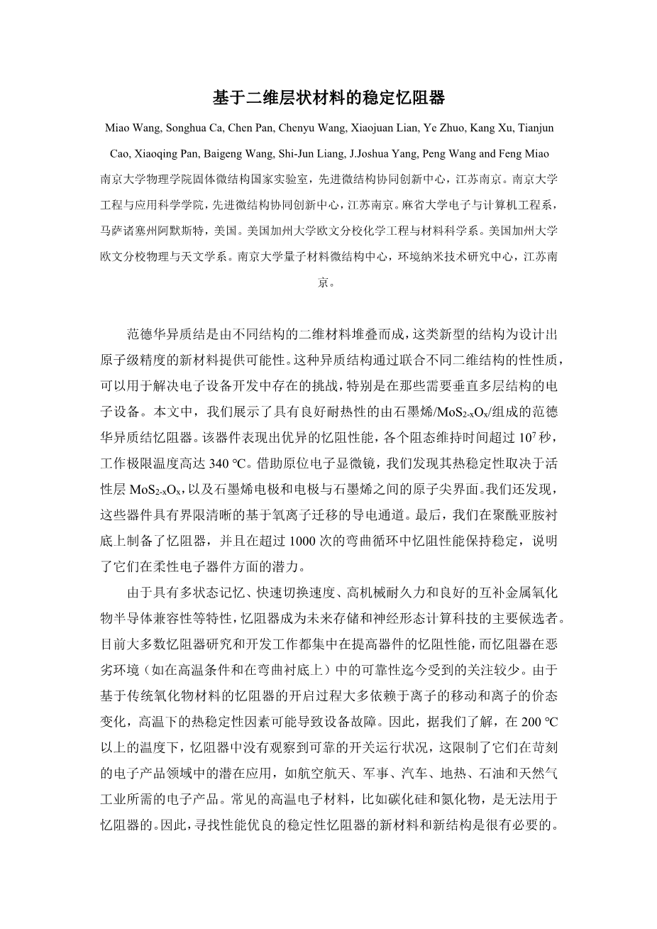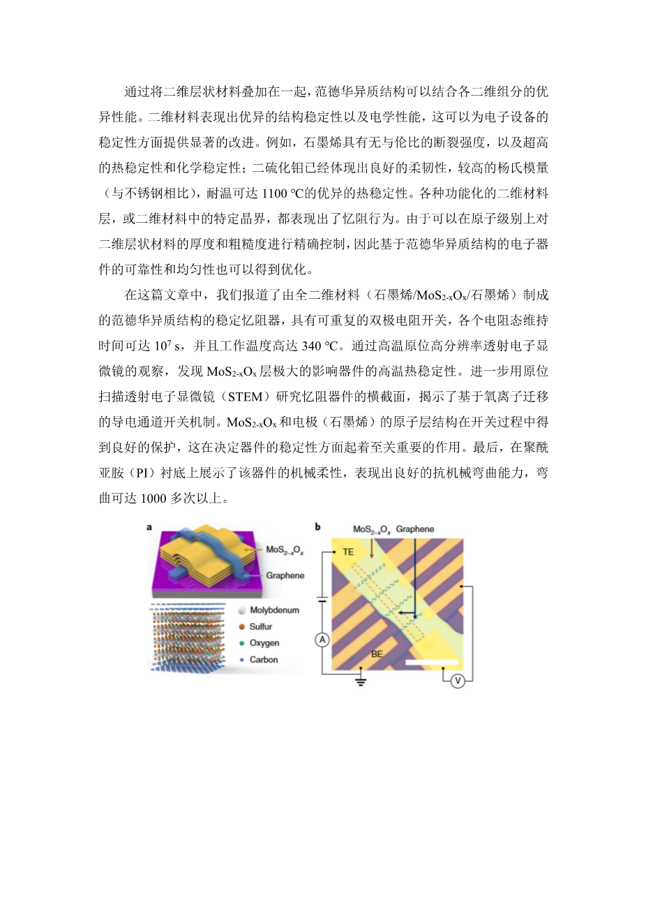 基于二维层状材料的稳定忆阻器外文翻译资料