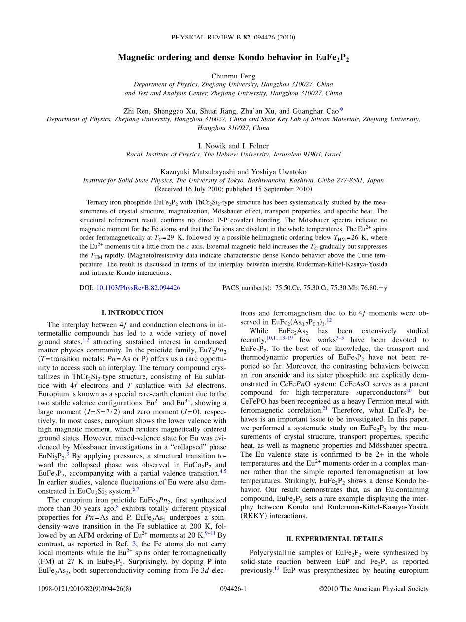EuFe2P2中的磁有序和致密近藤行为外文翻译资料