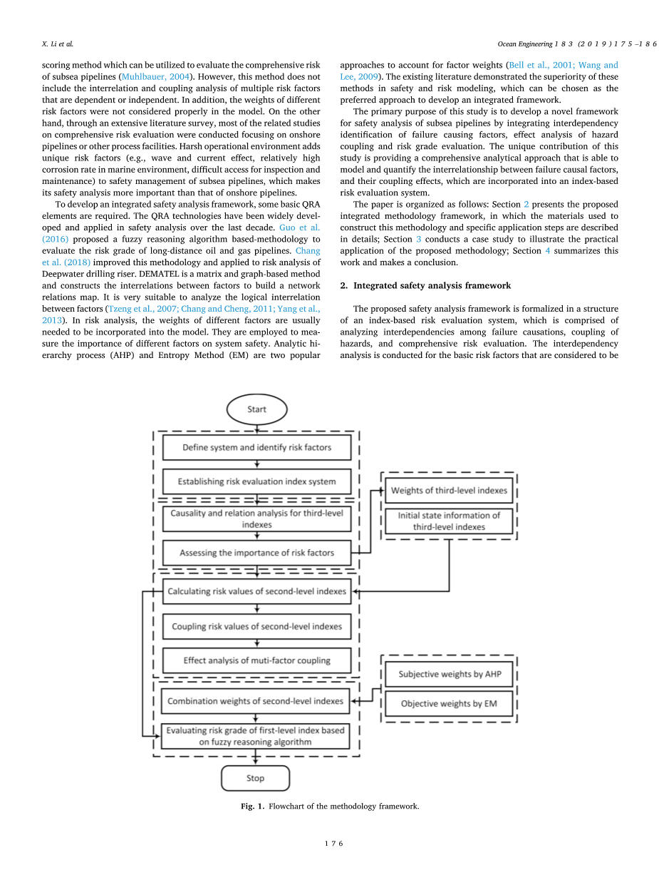 为了开发一个集成的安全分析框架,需要一些基本的QRA元素。近十年来,QRA技术在安全分析领域得到了广泛的发展和应用。Guo等(2016)提出了一种基于模糊推理算法的长输油气管道风险等级评价方法。Chang等人(2018)改进了该方法,并将其应用于深水钻井立管风险分析。DEMATEL是一种基于矩阵和图的方法,通过构建各因素之间的相互关系来构建网络关系图。非常适合分析因素之间的逻辑相互关系(Tzengetal.,2007;Chang和Cheng,2011;Yangetal.,2013)。在风险分析中,通常需要将不同因素的权重纳入模型中。它们被用来衡量不同因素对系统安全的重要性。层次分析法(AHP)和熵值法(EM)是两种常用的考虑因素权重的方法(Belletal.,2001;王和李,2009)。现有的文献证明了这些方法在安全与风险建模方面的优越性,可以选择这些方法作为开发集成框架的首选方法。