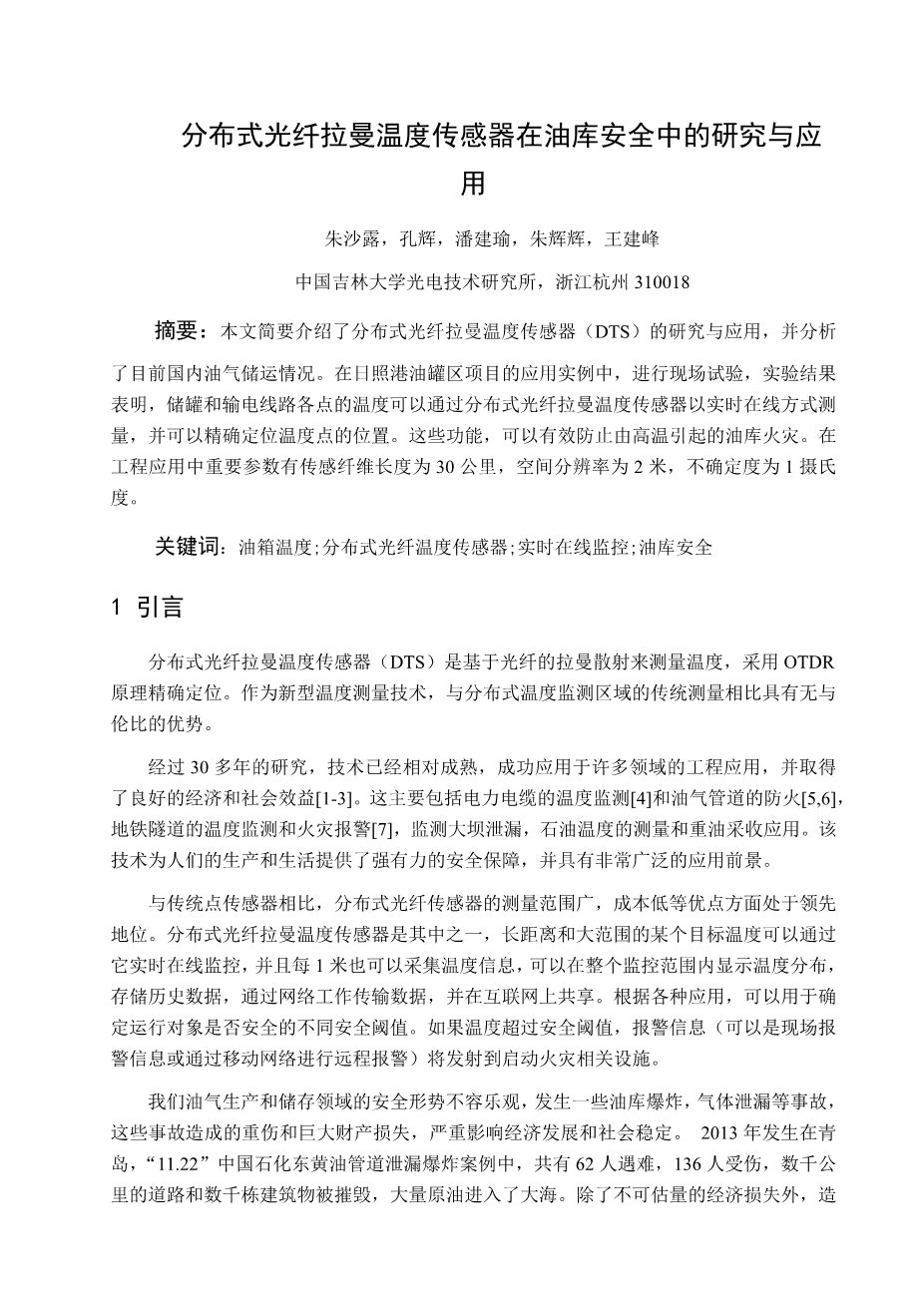 分布式光纤拉曼温度传感器在油库安全中的研究与应用外文翻译资料
