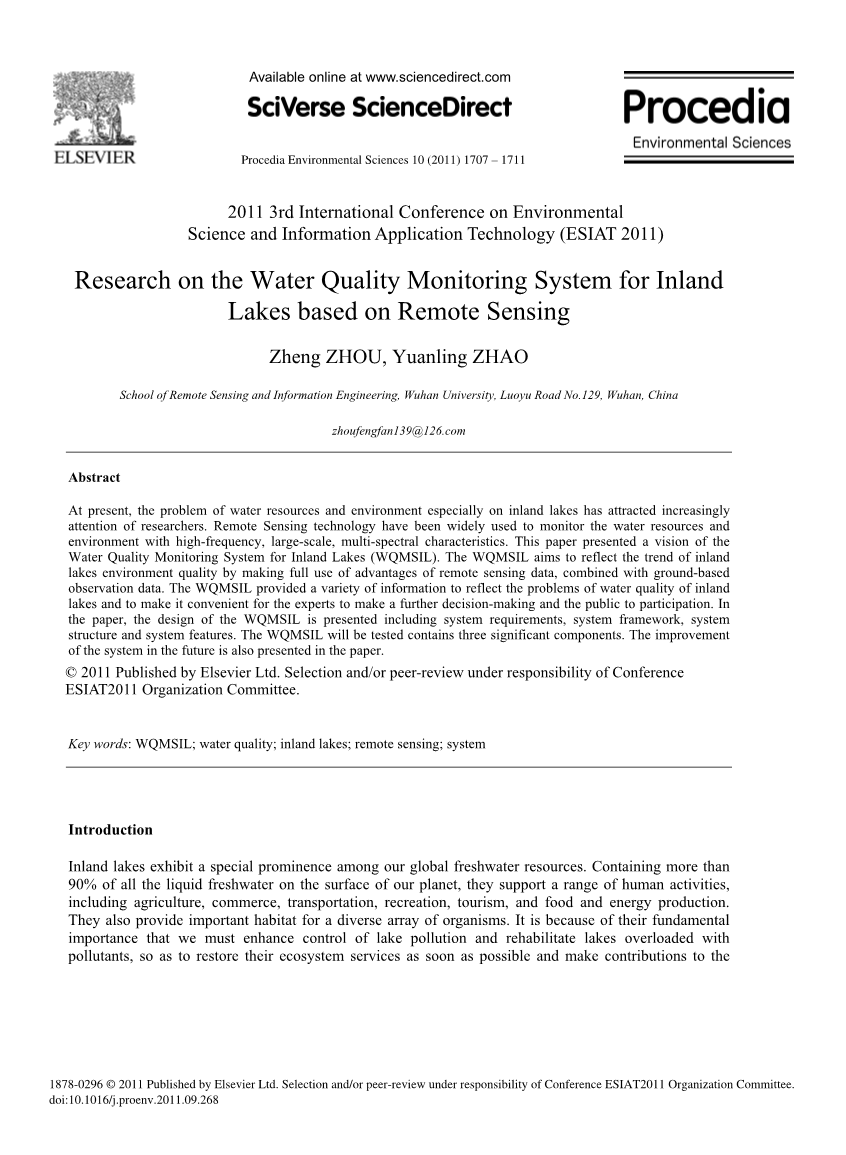 基于遥感的内陆湖泊水质监测系统研究外文翻译资料