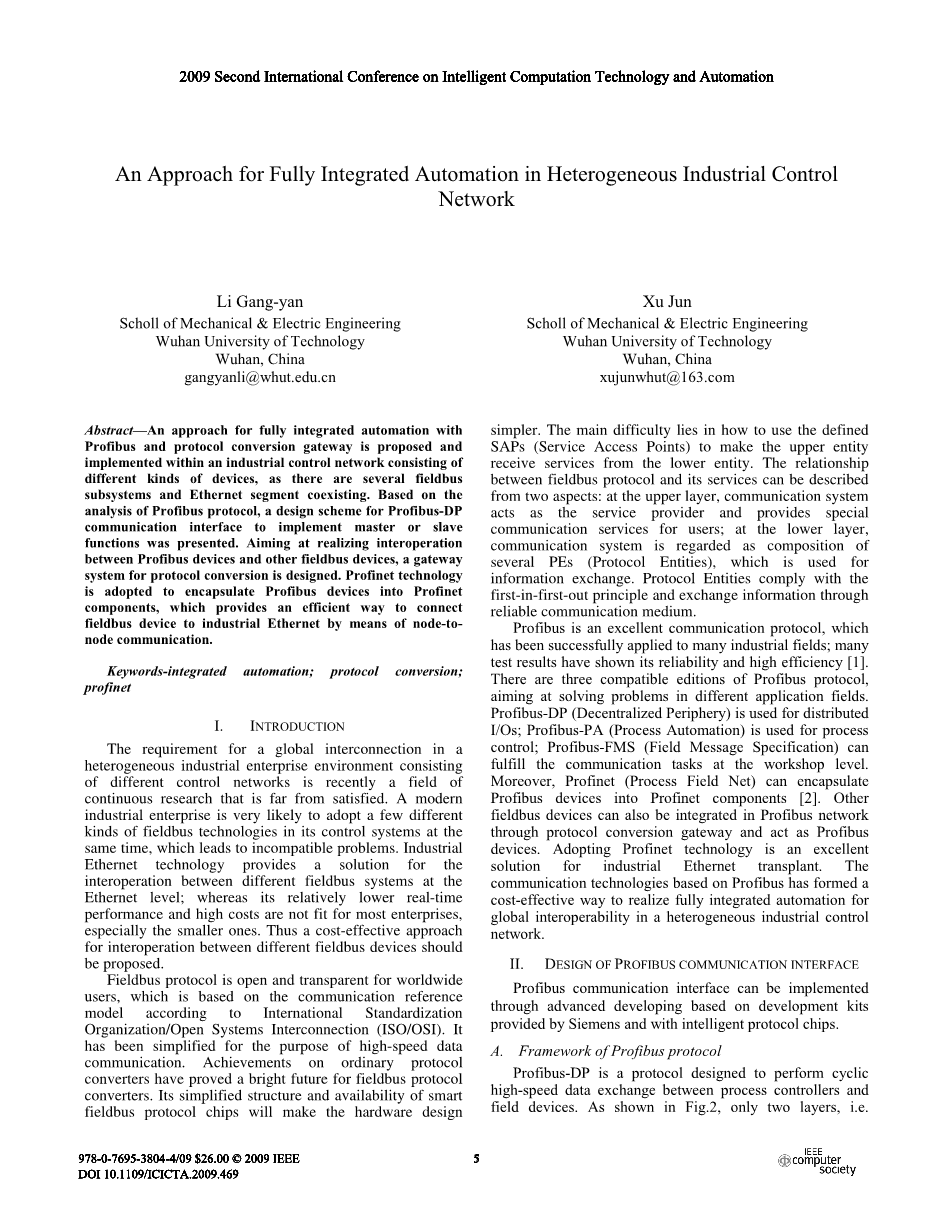 异构工业控制网络中全集成自动化的一种方案外文翻译资料
