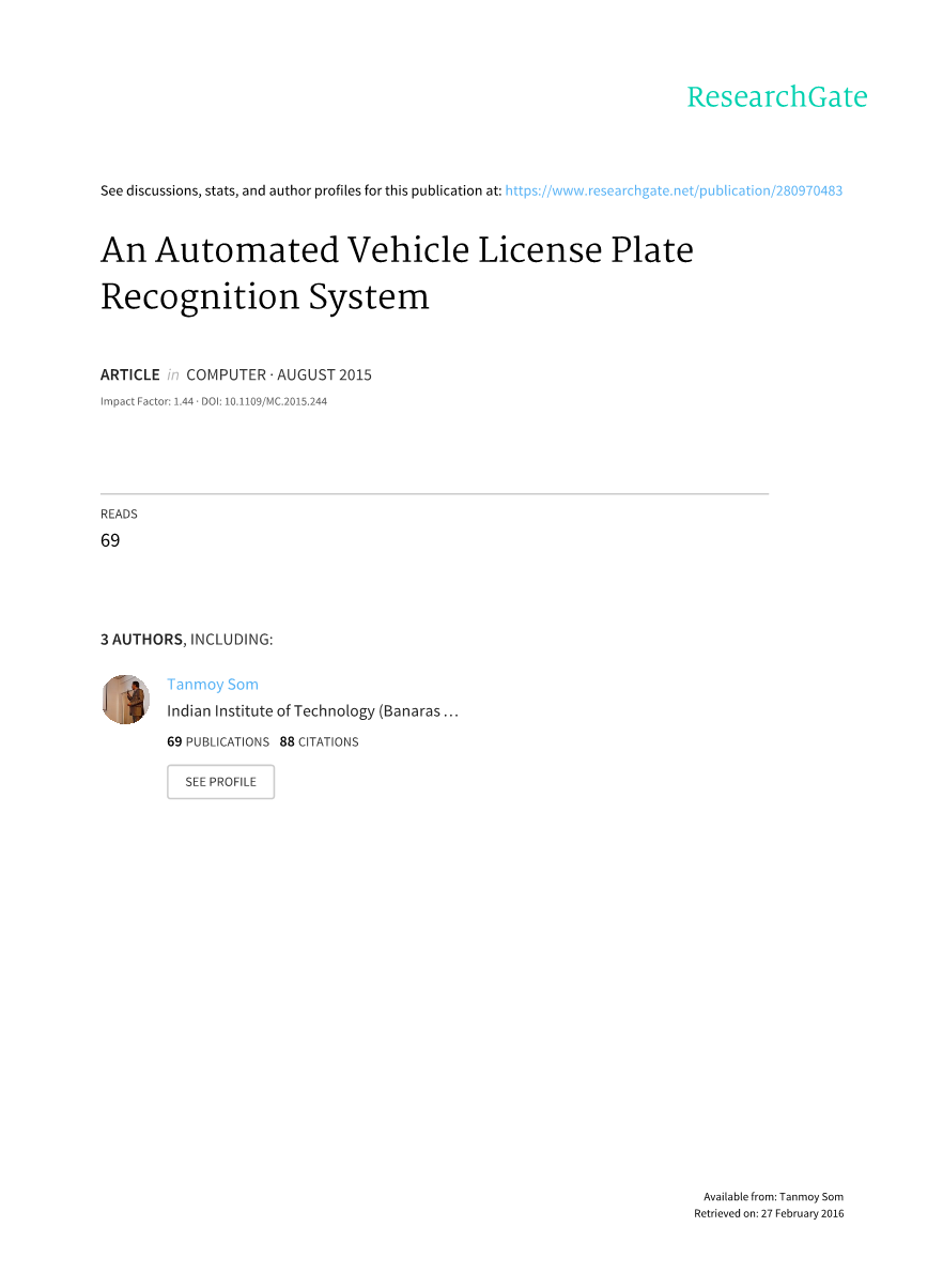 该系统分为三个阶段的过程,包括图像采集,车牌位板和号码识别——这种自动的车牌识别系统准确识别40种不同型号的车牌并且识别率达到了百分之97.