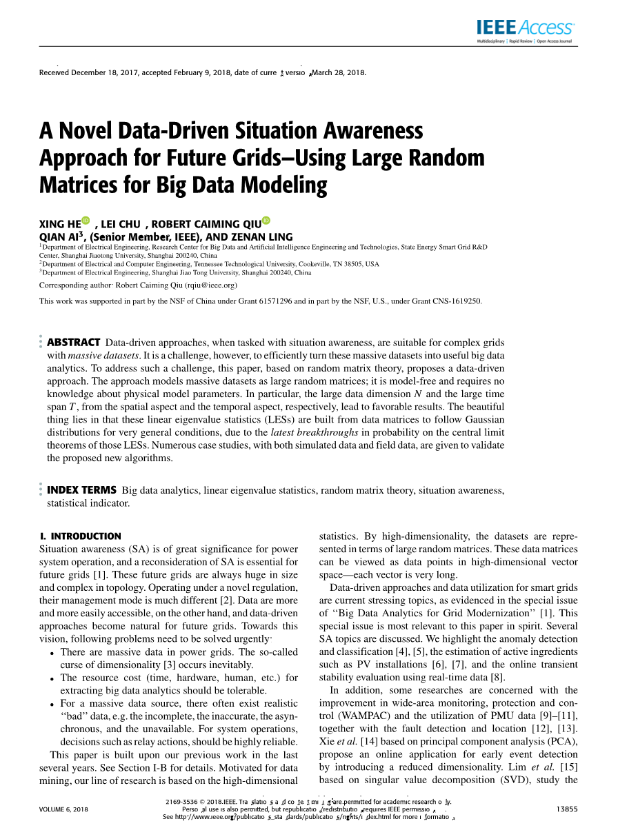 XING HE1 , LEI CHU 1 , ROBERT CAIMING QIU 1,2 , (Fellow, IEEE),