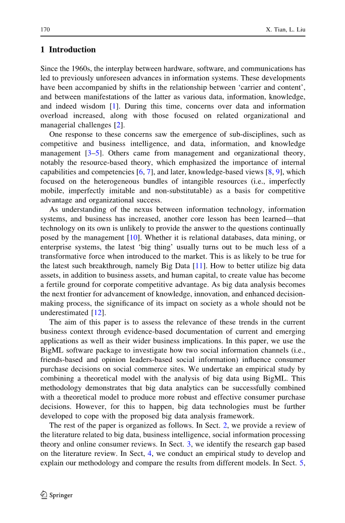 本文的目的是通过对当前和新兴应用的实证文档以及它们更广泛的业务影响来评估这些趋势在当前业务环境中的相关性。在本文中,我们使用BigML软件包来调查两个社交信息渠道(即基于朋友的和基于意见领袖的社交信息)如何影响社交商务网站上的消费者购买决策。 我们通过把理论模型与使用BigML分析大数据相结合来进行实证研究。 这种方法论证明,大数据分析可以成功地与理论模型相结合,以产生更强大,更有效的消费者购买决策。 但是为了实现这一点,大数据技术必须进一步发展以应对所提出的大数据分析框架。