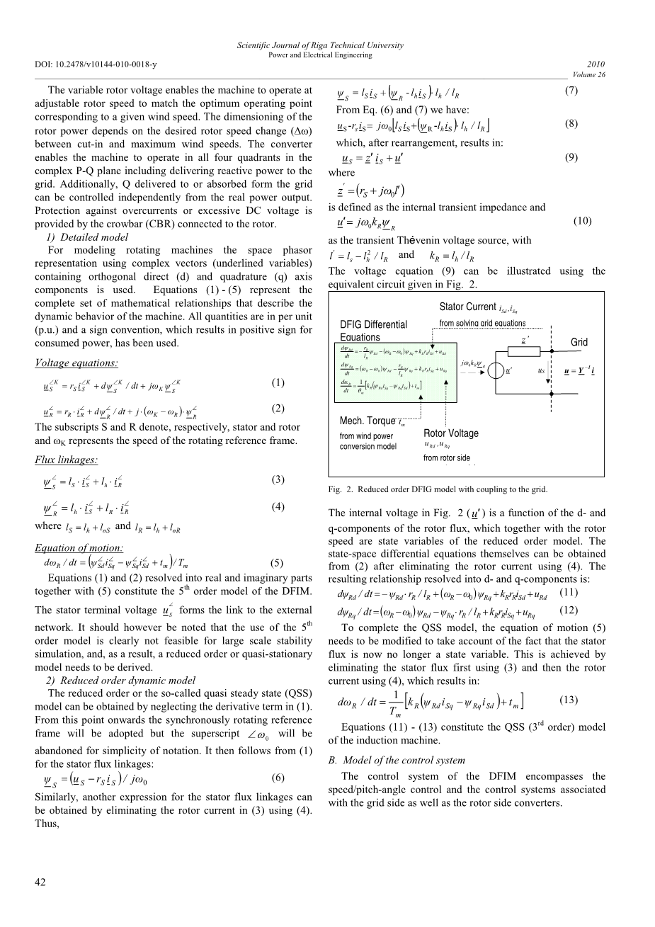 包含正交直接(d)和正交(q)轴分量。 等式(1) - (5)表示描述机器动态行为的完整数学关系集。 所有数量都以每单位(pu)为单位,并且符号惯例会导致消耗功率的正号。