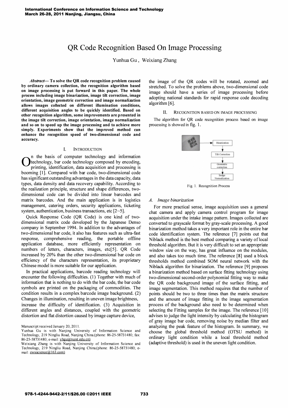 [ 1 ] Y.Liu,M.Y.Liu,“QR code二维条码数据编码的研究”,北京理工大学学报,VoI.25,No.4,pp.352-355, 2005.04