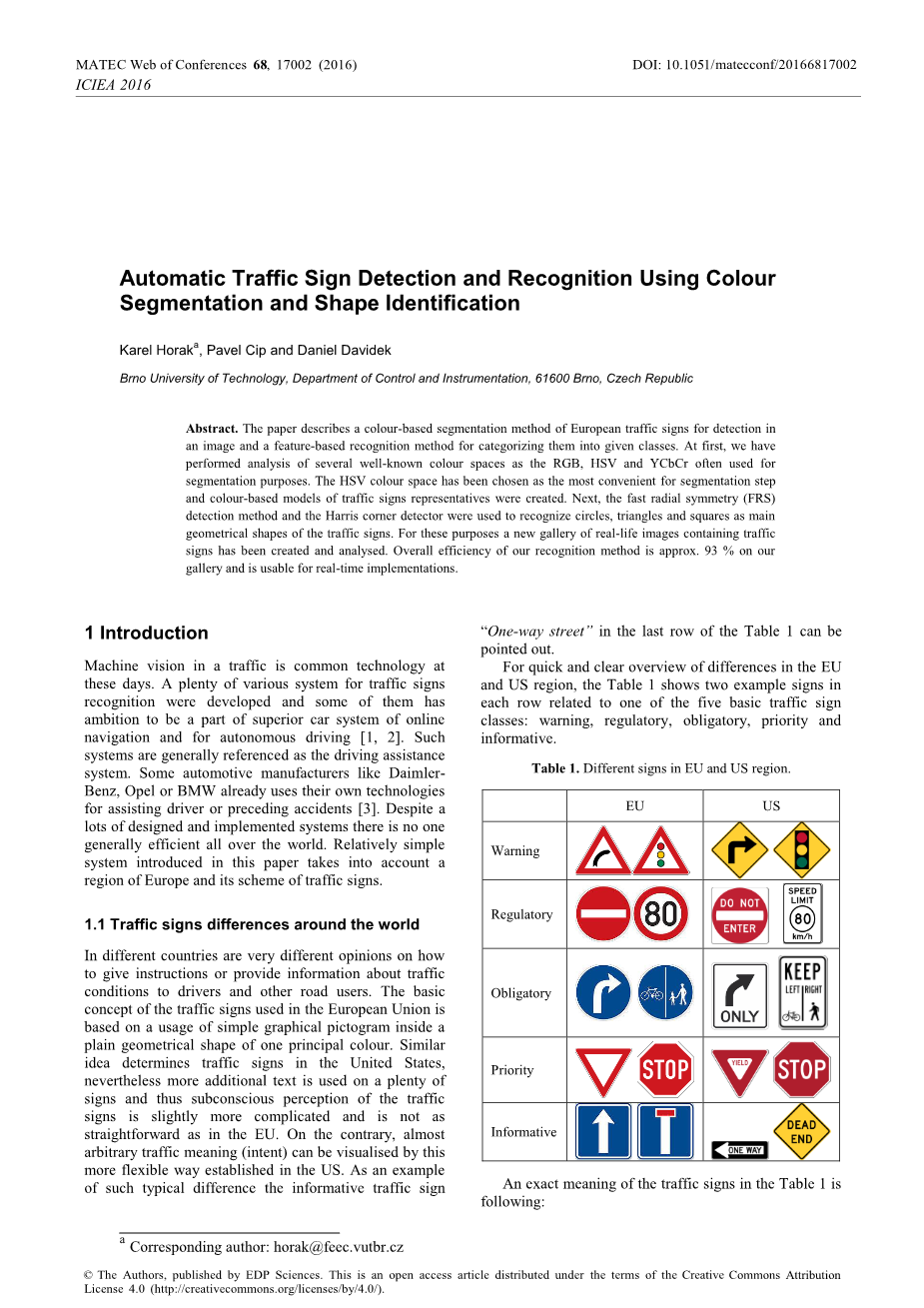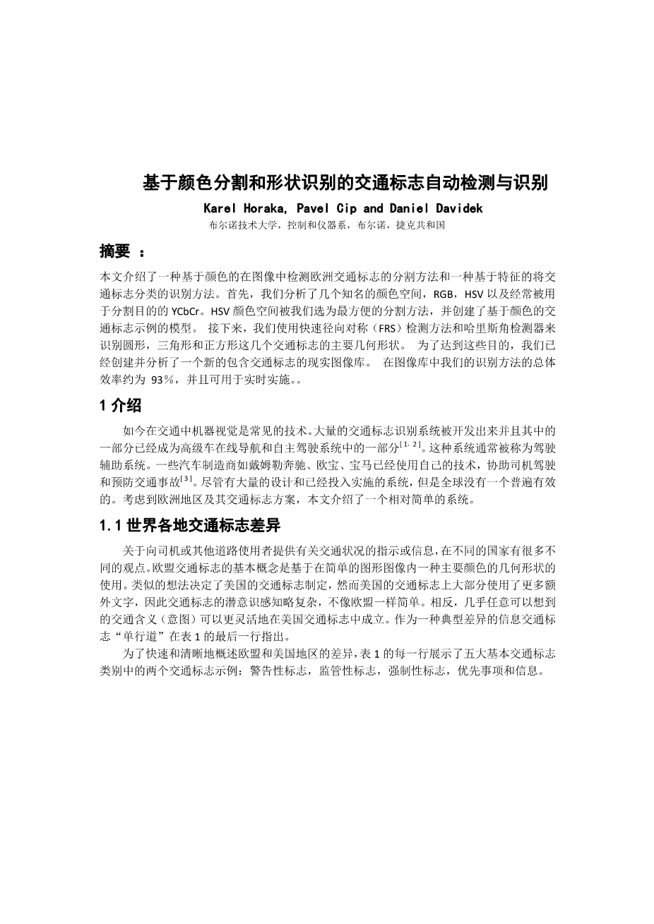 基于颜色分割和形状识别的交通标志自动检测与识别外文翻译资料