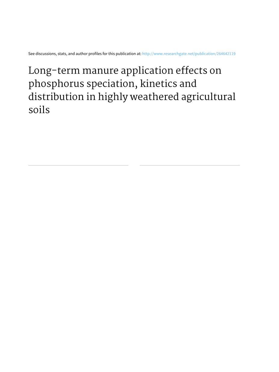长期施肥对高风化农业土壤磷形态、动力学和分布的影响外文翻译资料