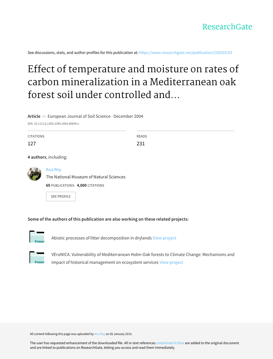 在培养和田间条件下温度和湿度对地中海橡树林土壤碳矿化速率的影响外文翻译资料