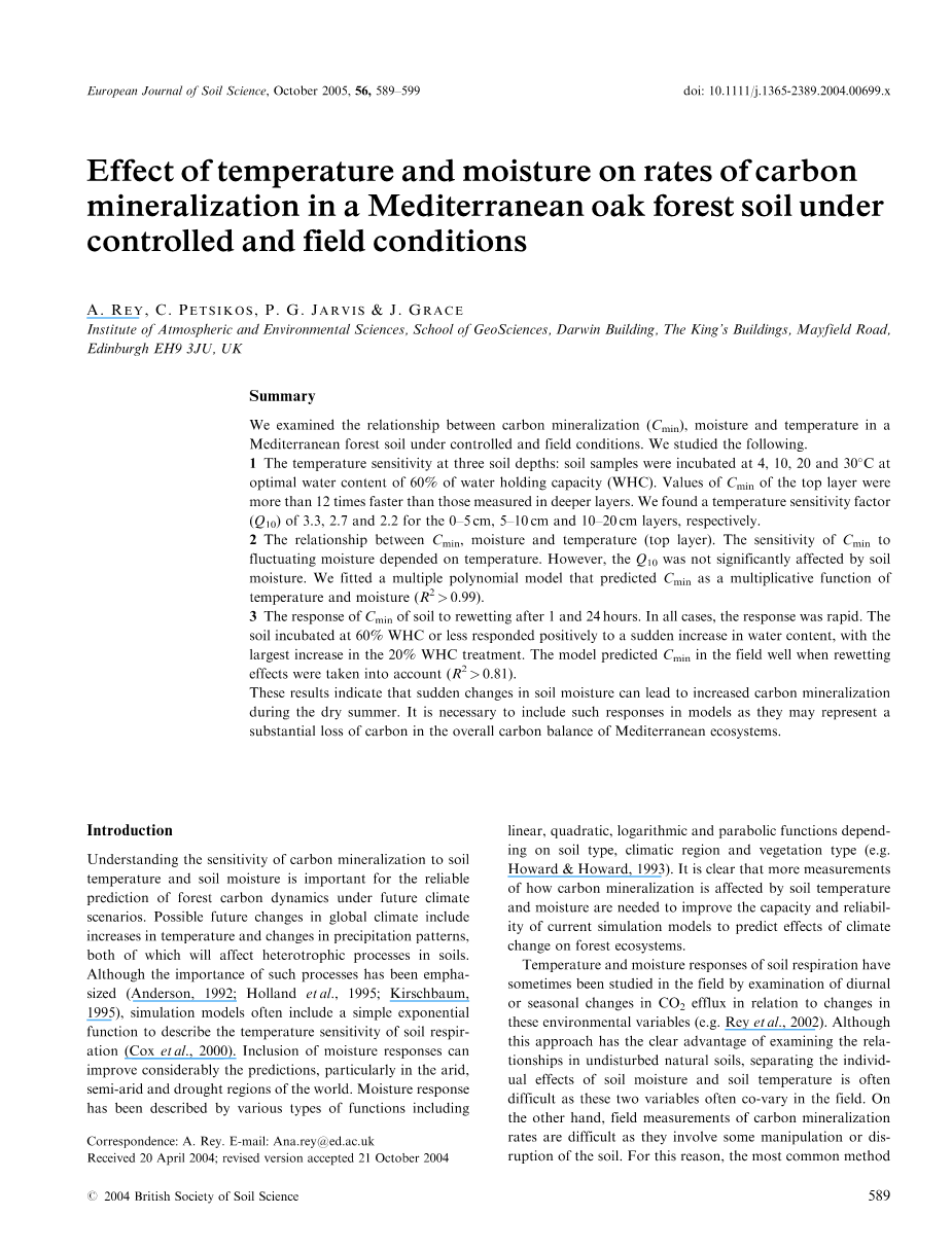 A. REY,C. PETSIKOS,P. G. JARVIS amp; J. GRACE