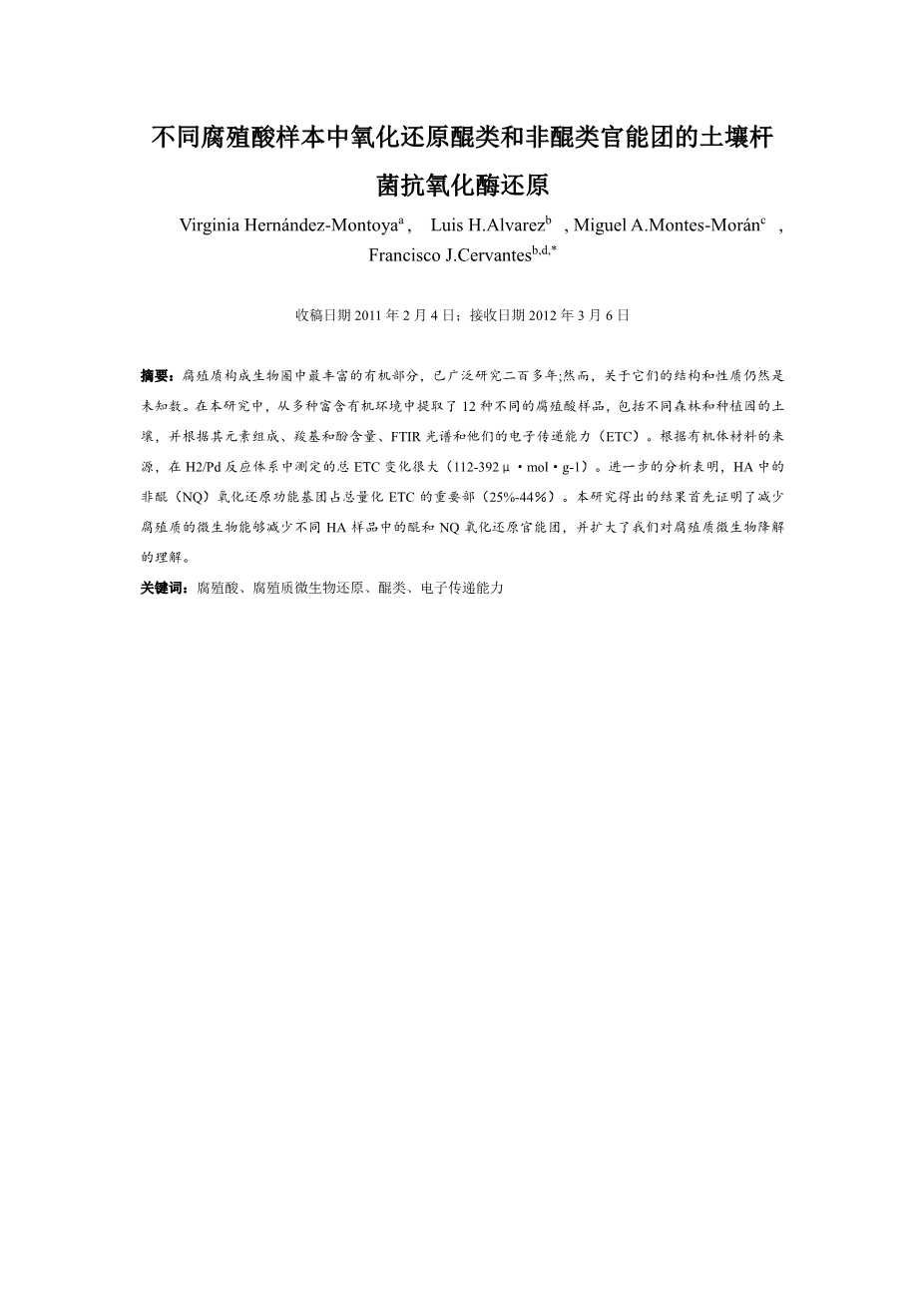 - 不同腐殖酸样本中氧化还原醌类和非醌类官能团的土壤杆菌抗氧化酶还原外文翻译资料