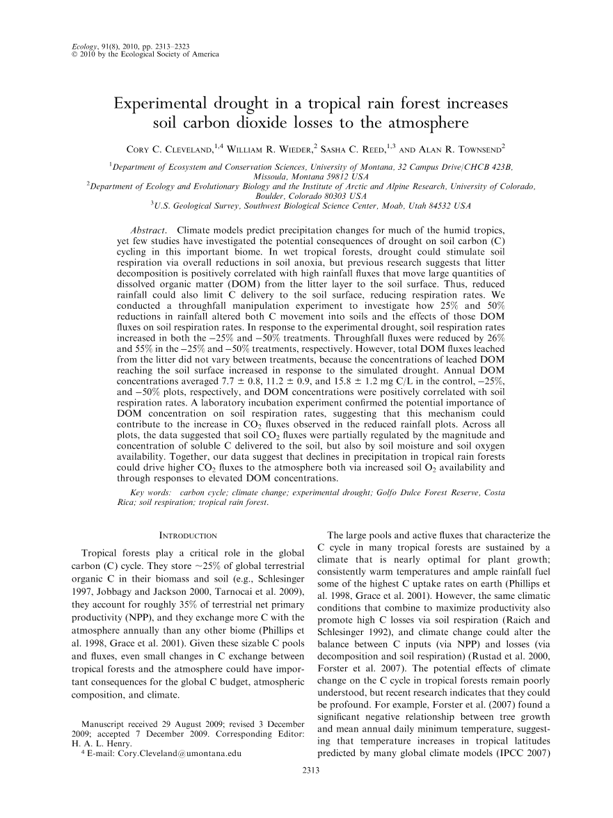 热带雨林的实验性干旱增加了土壤中的二氧化碳流失到大气中外文翻译资料