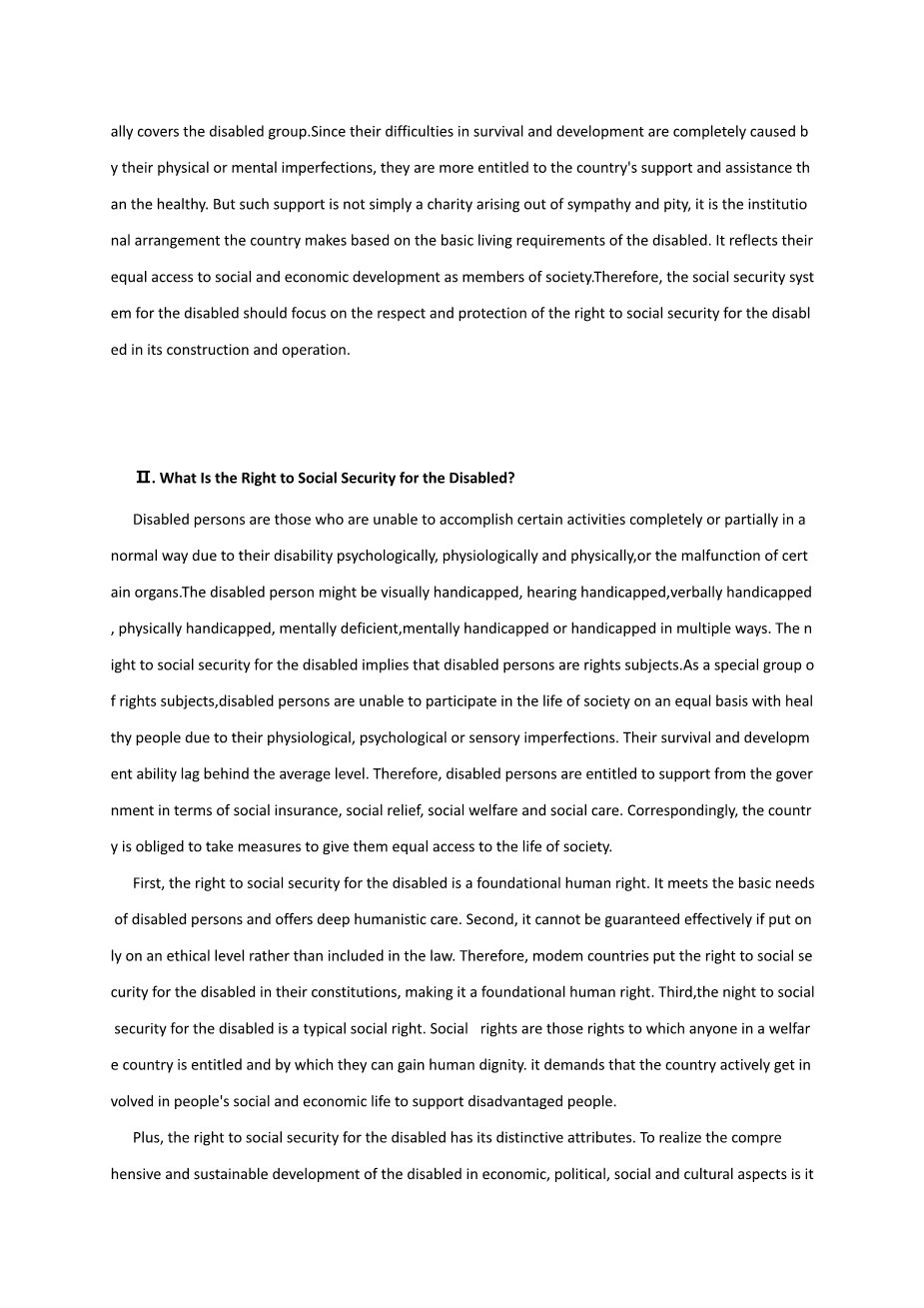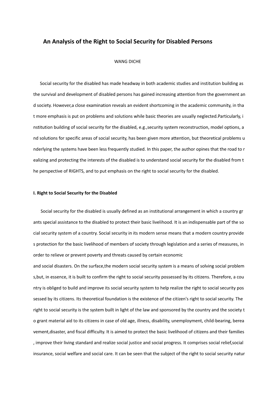 残疾人社会保障权利探析外文翻译资料