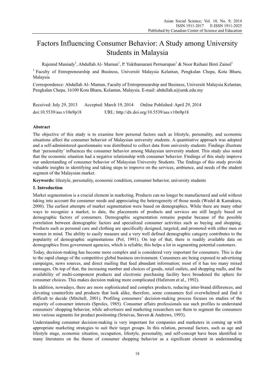 原文作者:Rajennd Muniady1, Abdullah Al- Mamun , P. Yukthamarani Permarupan1amp; Noor Raihani Binti Zainol