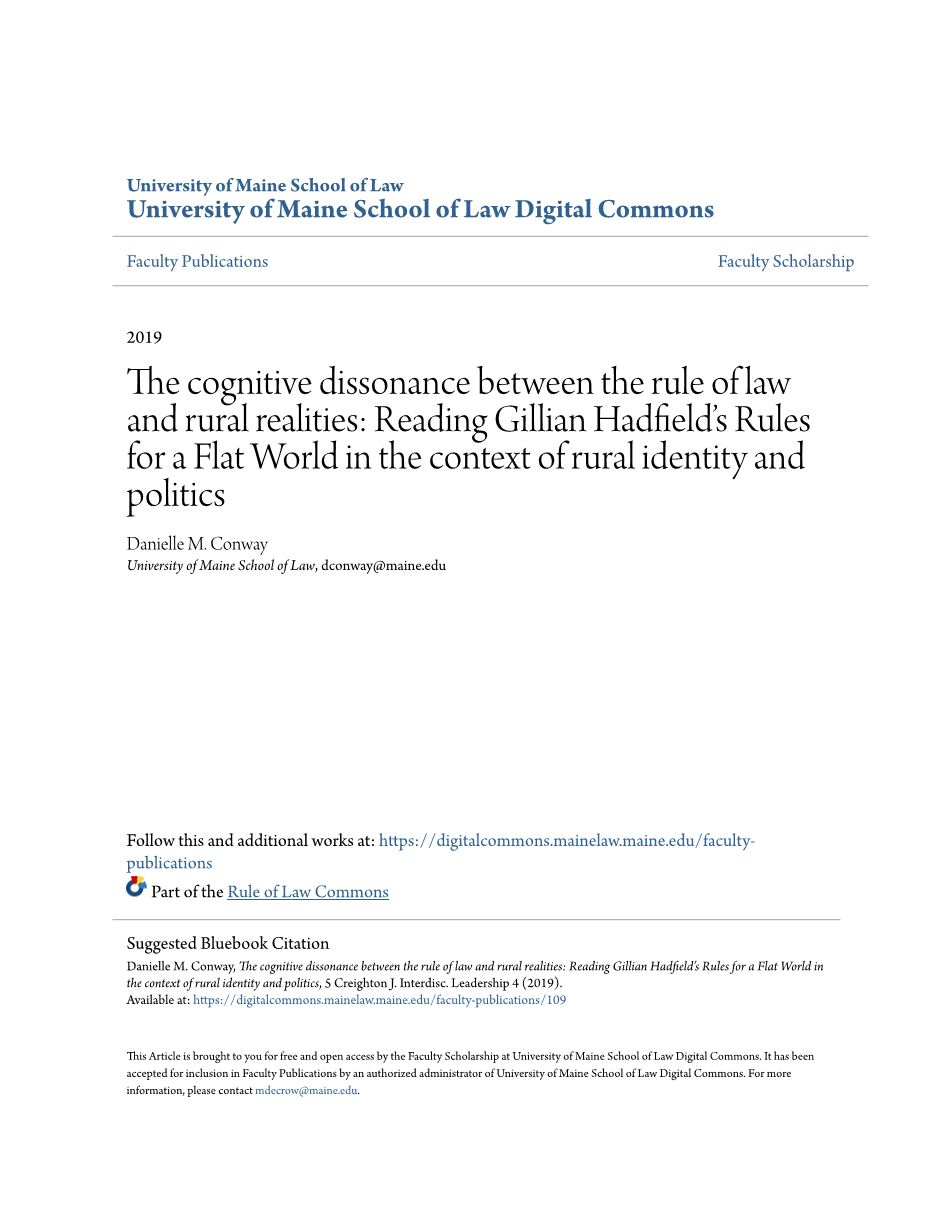 法治与农村现实之间的认知失调: 在农村的身份和政治背景下阅读吉莉安·哈德菲尔德的《平坦世界的规则》