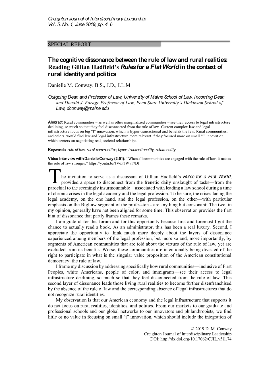 法治与农村现实之间的认知失调: 在农村的身份和政治背景下阅读吉莉安·哈德菲尔德的《平坦世界的规则》外文翻译资料