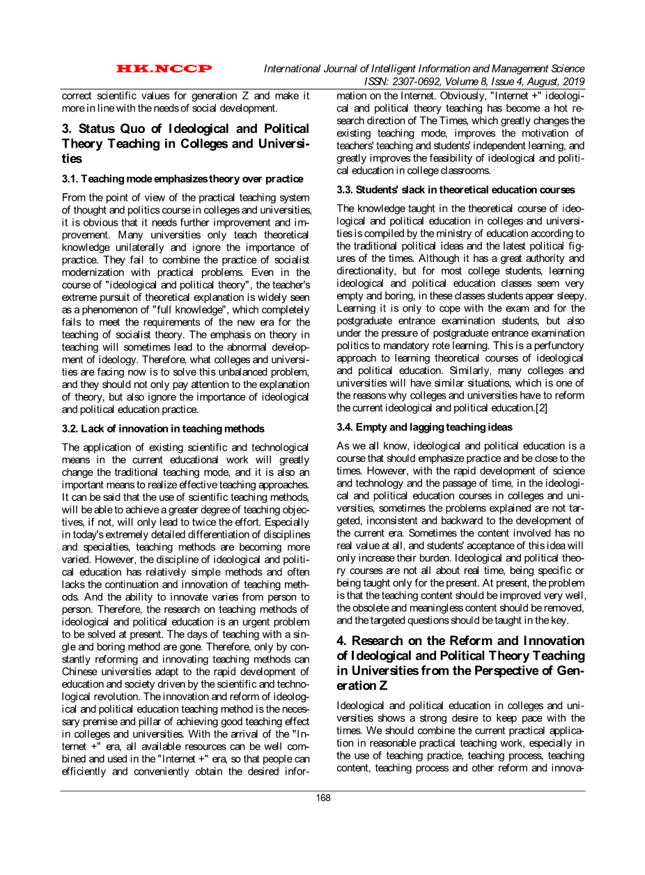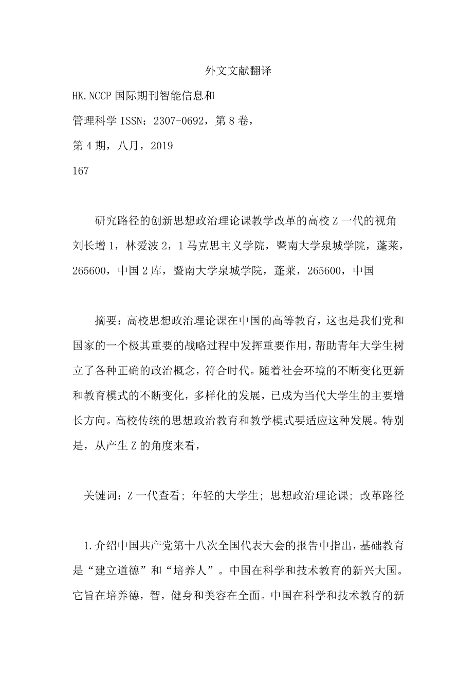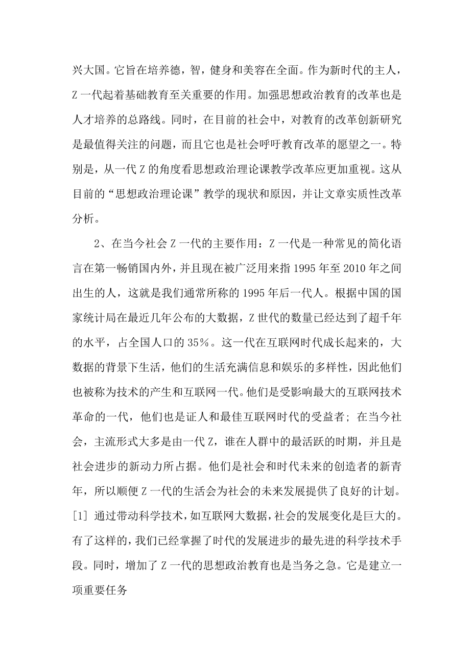 研究路径的创新思想政治理论课教学改革的高校Z一代的视角外文翻译资料