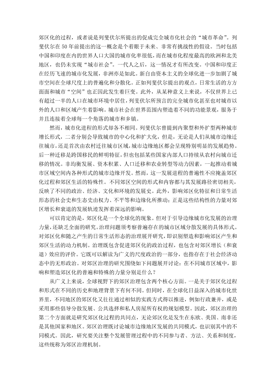 Therefore, this article is for the purpose of creating a frame for suburb government, explained that the suburbanization universal tendency, and focuses in the concrete manifestation of suburbanization globally development. Indeed, the different local description suburb lifes keyword is different, and truly has represented various concrete forms of dispersed city space. But these forms the behind is the process of urbanized and suburbanization, or is the facilitation completely urbanization society that Lefebrve proposed “urban revolution”. Lefebrve is focuses on the concept that 50 years ago put forward the future, has the challenging supposition. At that time and Indian the urbanization of world population great nation including Chinese rate was very low, but in the urbanized degree highest Europe and North American area, had not realized “urban society”. After one generation, this situation changes. China and India are experiencing the rapid urbanized development, Africa is also so. The globalization of new non-monopoly capitalism further intensified the urban space the generalization and decentralization in global criterion. Viewpoint that just like Lefebrve proposed, daily life aspects and cities “space” also therefore is just having the great change. In addition, in some sense, not only in the world had to be over half the population to live in the urban environment, the complete urbanization that Lefebrve predicted even also and region outside to city the population is having the influence. The urban society is molding the different function landscape around the world, serves, and is connecting the global each corners cities and villages.