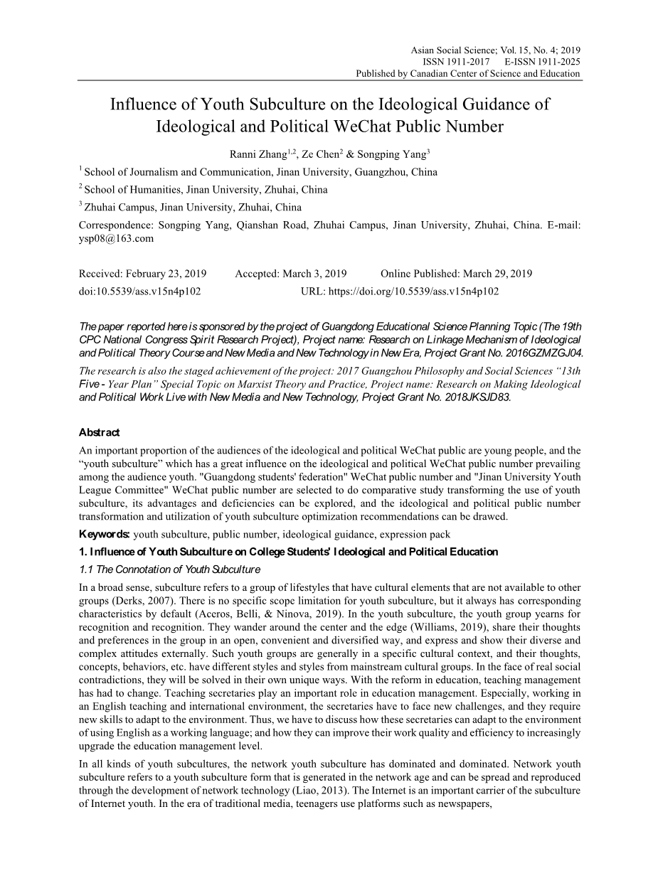 青年亚文化对思想政治微信公众号思想引导的影响外文翻译资料