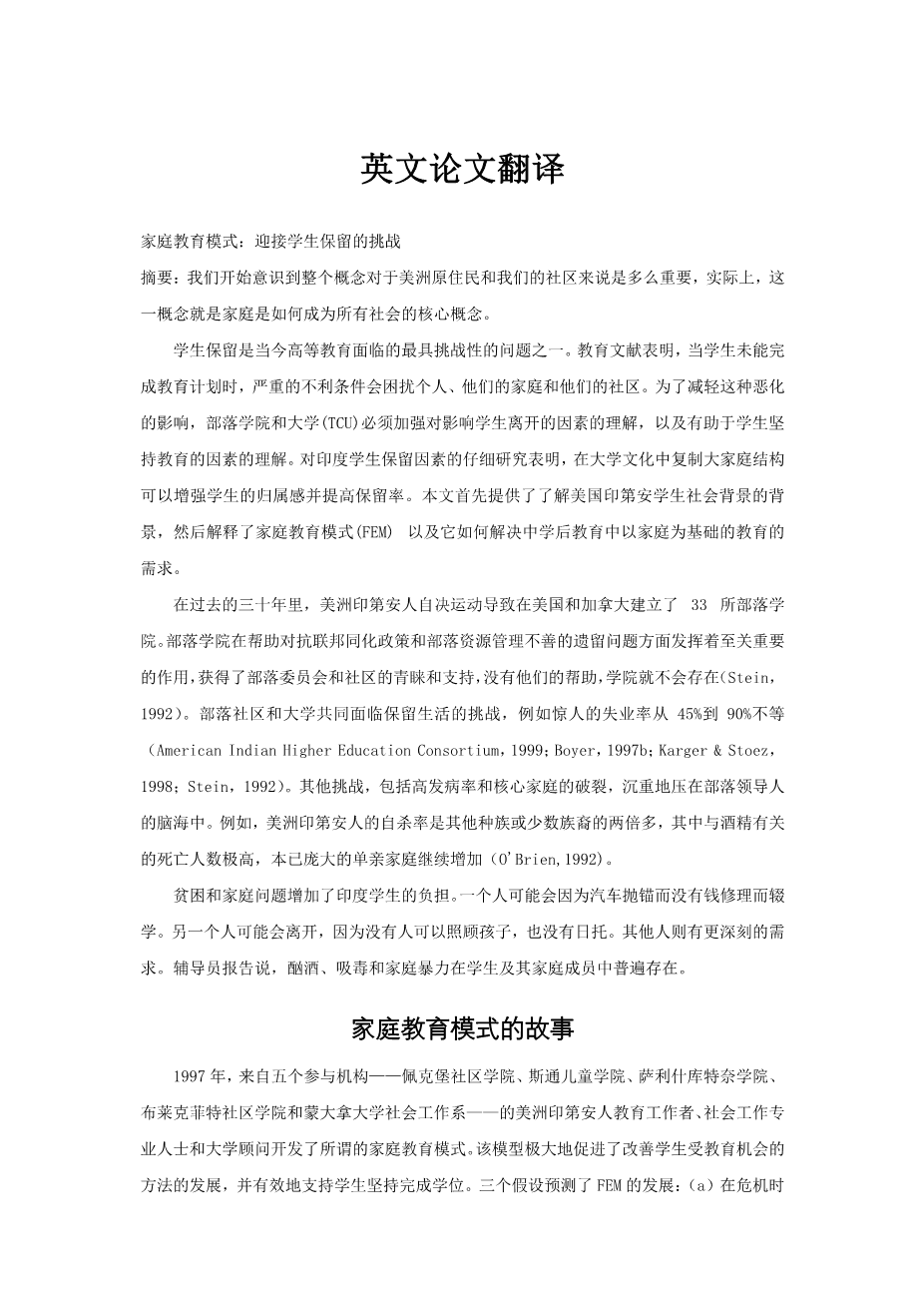 家庭教育模式:迎接学生保留的挑战外文翻译资料