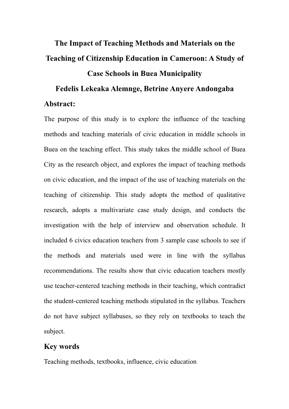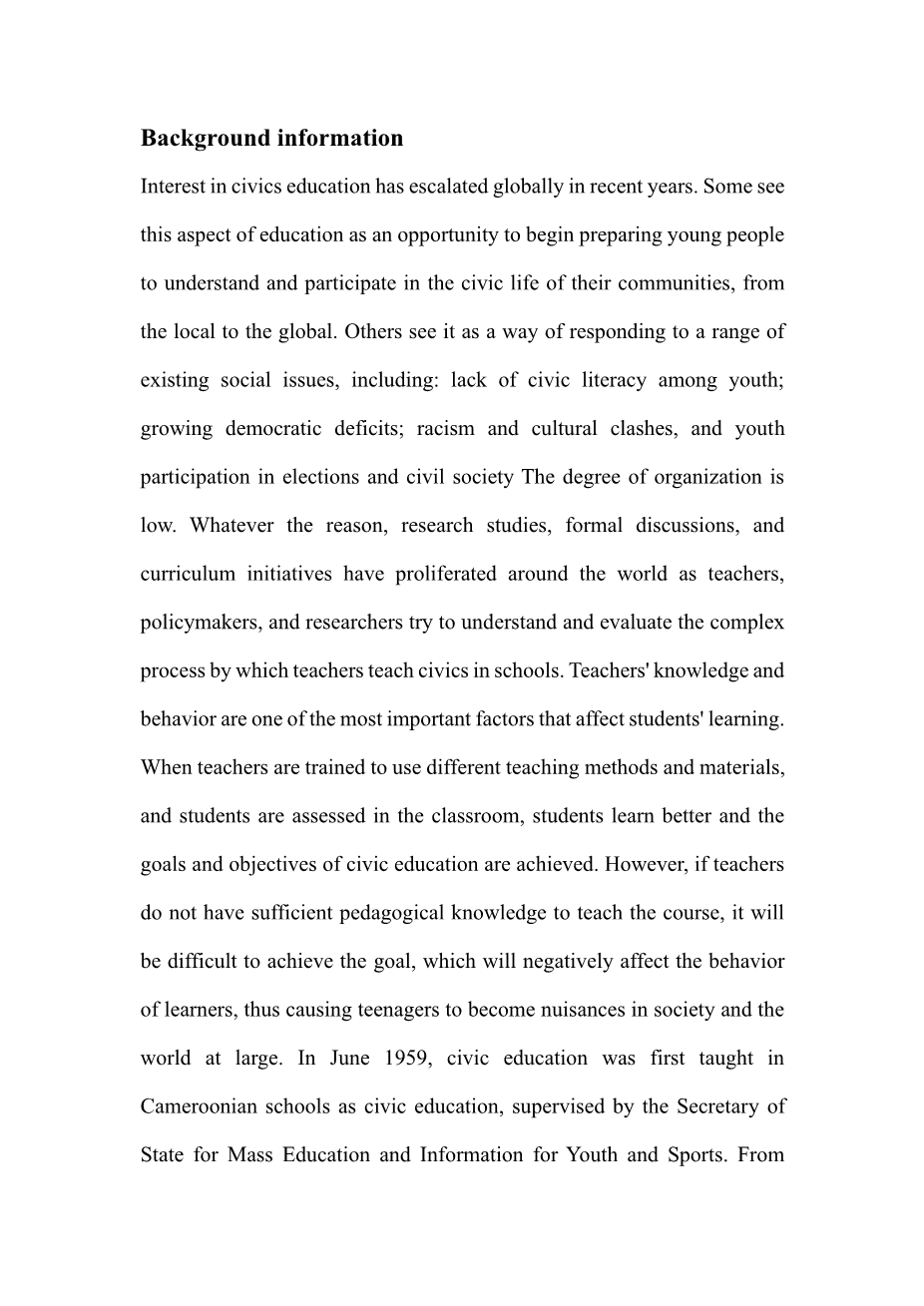 教学方法和教材对喀麦隆公民教育教学的影响外文翻译资料