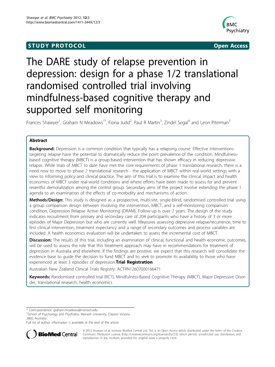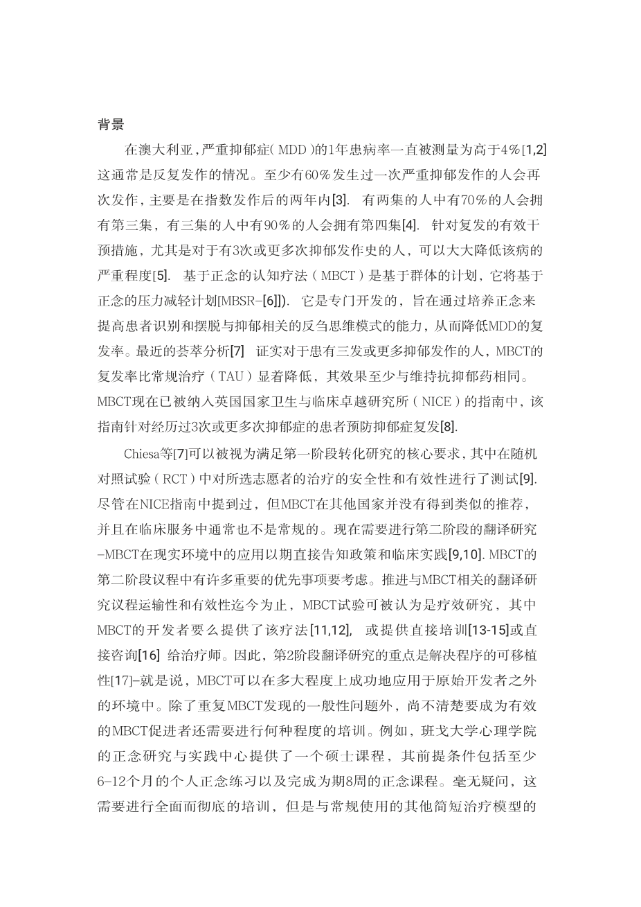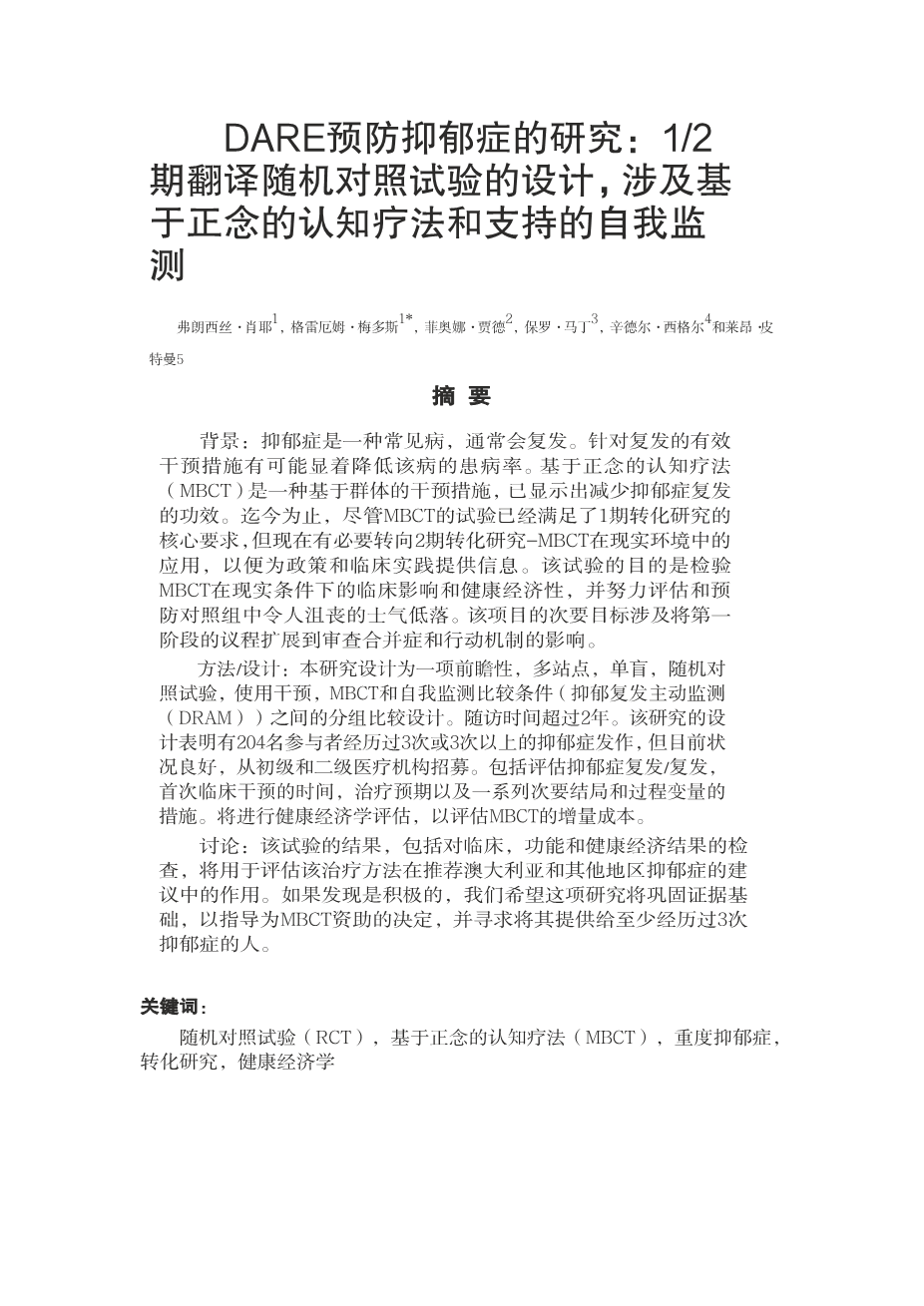 DARE预防抑郁症的研究:1/2期翻译随机对照试验的设计,涉及基于正念的认知疗法和支持的自我监测外文翻译资料