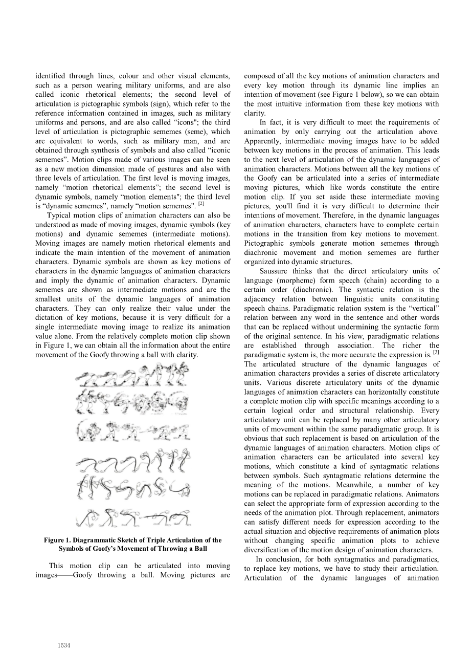 索绪尔认为语言(语素)根据特定顺序(历时)。句法关系是构成语言单位间的邻接关系语音链范式关系系统是“垂直的”句子中任何词与其他词的关系可以在不破坏句法形式的情况下替换原来的句子。在他看来,典范关系通过联合建立。更富有的范例系统是,表达越准确。〔3〕动态语言的表达结构动画角色提供了一系列离散的清晰度单位。动态的各种离散的关节单位动画人物的语言可以横向构成根据A.一定的逻辑顺序和结构关系。每个发音单位可以被许多其他发音单位取代同一范式群内的运动单位。它是很明显,这种替换是基于动画人物的动态语言。运动剪辑动画角色可以表达成几个关键点运动,构成一种语法关系符号之间。这种句法关系决定了运动的意义。同时,一些钥匙运动可以用范式关系代替。动画师可以根据动画情节的需要。通过替换,动画师可以满足不同的表达需求动画情节的实际情况和客观要求无需更改特定动画绘图即可实现动画人物的动作设计多样化。