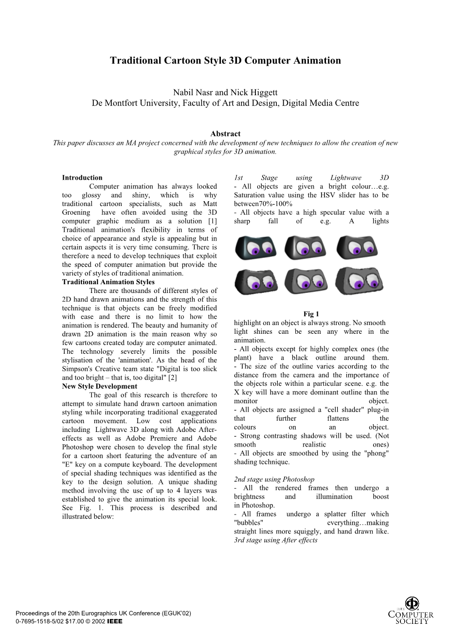 电脑动画一直都很好看太光泽和有光泽,这就是为什么传统卡通专家,如马特Groening经常避免使用3D计算机图形媒体作为解决方案[1]传统动画的灵活性方面外观和风格的选择是吸引人的,但在某些方面它非常耗时。有因此需要开发利用的技术计算机动画的速度,但提供各种风格的传统动画。