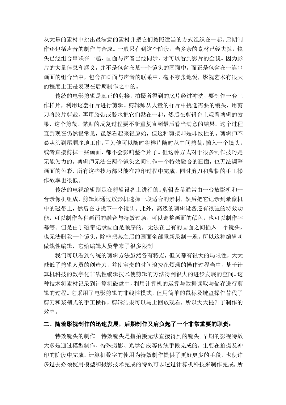 When after the completion of the work, like the post-production stage. Traditionally the main job of this phase is the clip, the shooting stage get scattered material cutting complete film. General in the filming process, the actual final cut finished filming material is film length several times or even dozens of times. Editor, a large amount of material is from selected the satisfaction of material and put them together according to the proper way. Production and post-production include voice synthesis. Generally only at this stage, when the material has been removed, excess lens is in series with the combination of picture and sound is synchronous, can only see the outline of the film. Because of the large amount of information and meaning of the film, is not included in a lens painting ?