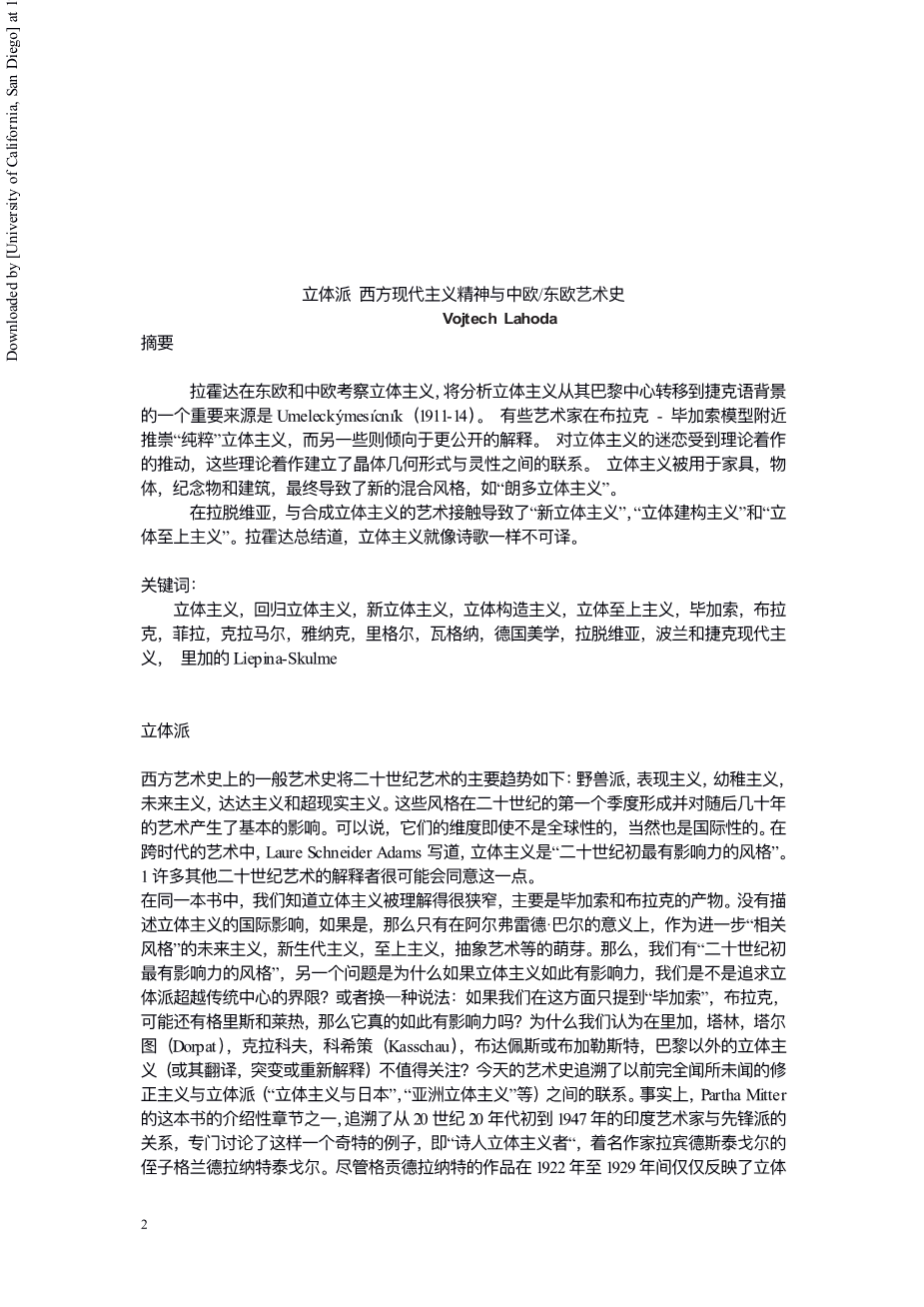 立体派 西方现代主义精神与中欧/东欧艺术史外文翻译资料