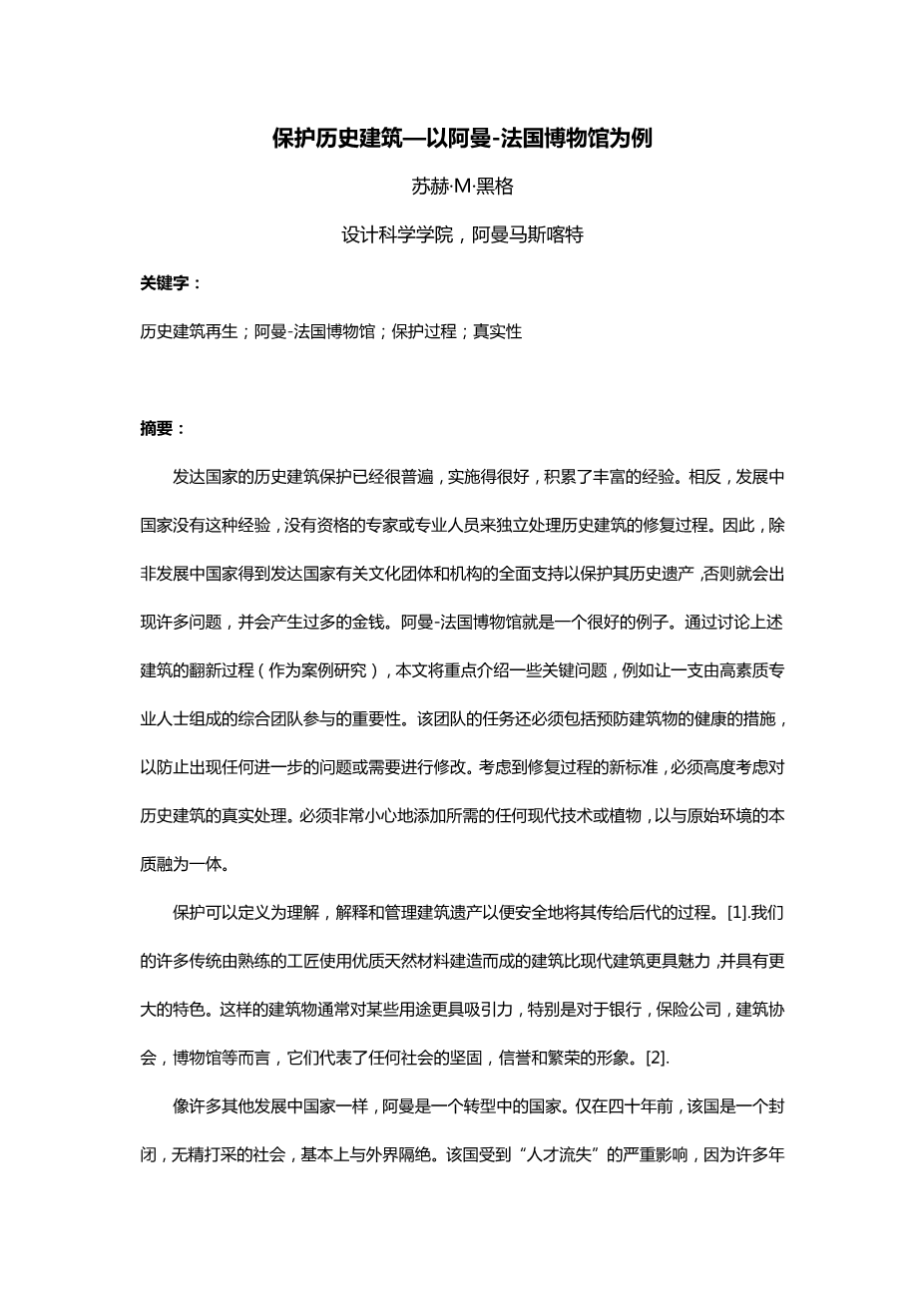 保护历史建筑—以阿曼-法国博物馆为例外文翻译资料