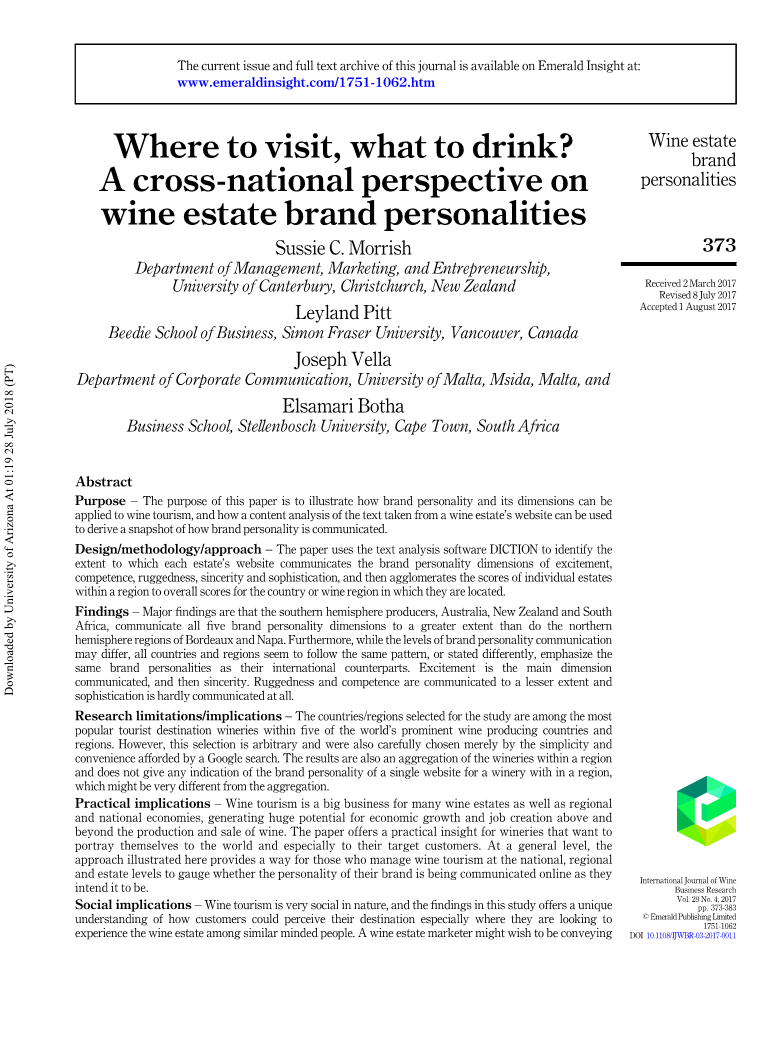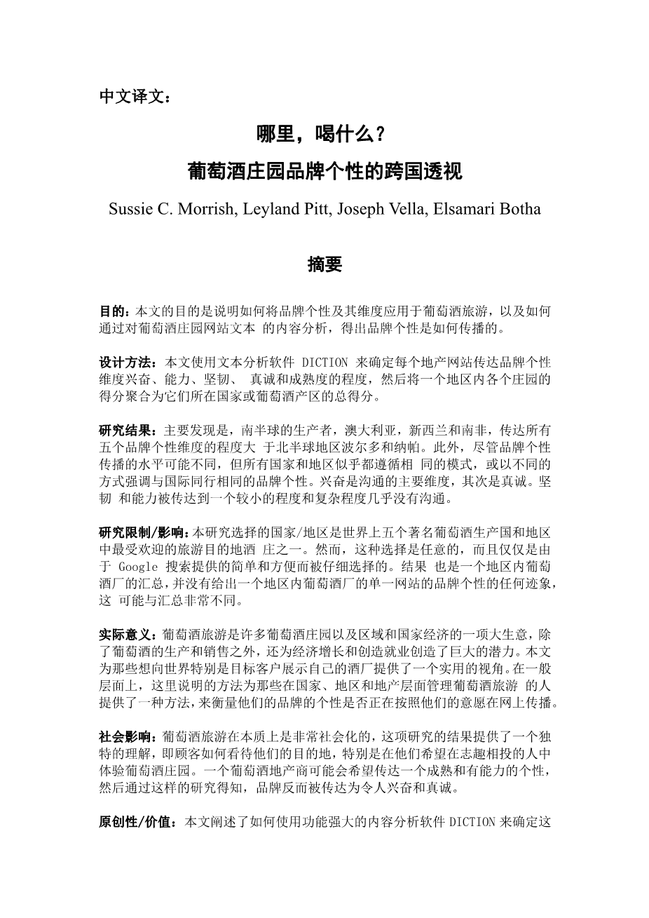 葡萄酒庄园品牌个性的跨国透视外文翻译资料