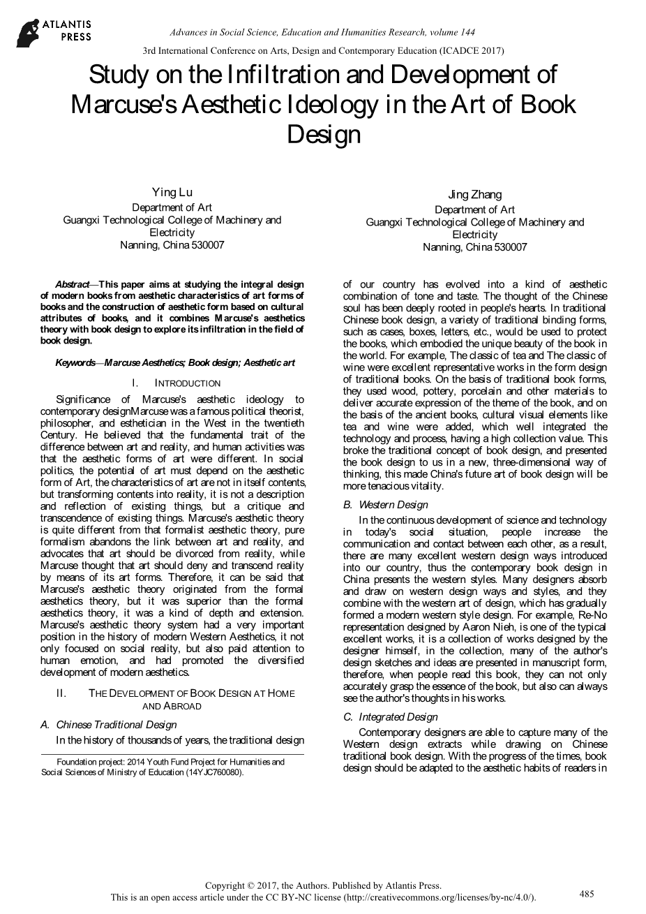 论马尔库塞美学思想在书籍设计艺术中的渗透与发展外文翻译资料