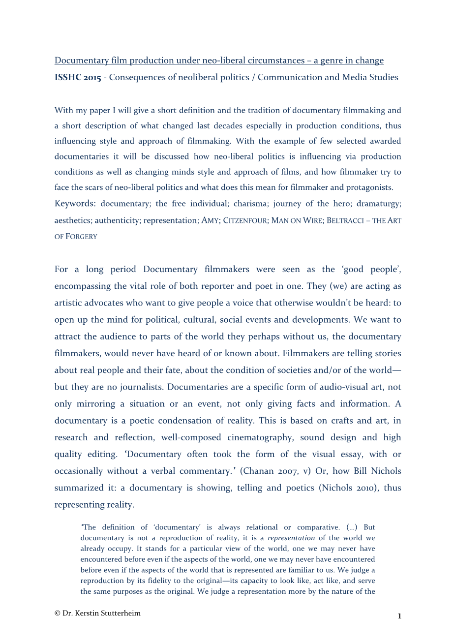 纪录片电影制作下,新自由主义的情况 - 在变化的流派ISSCC2015年 - 新自由主义的政治/通信与媒体研究的后果