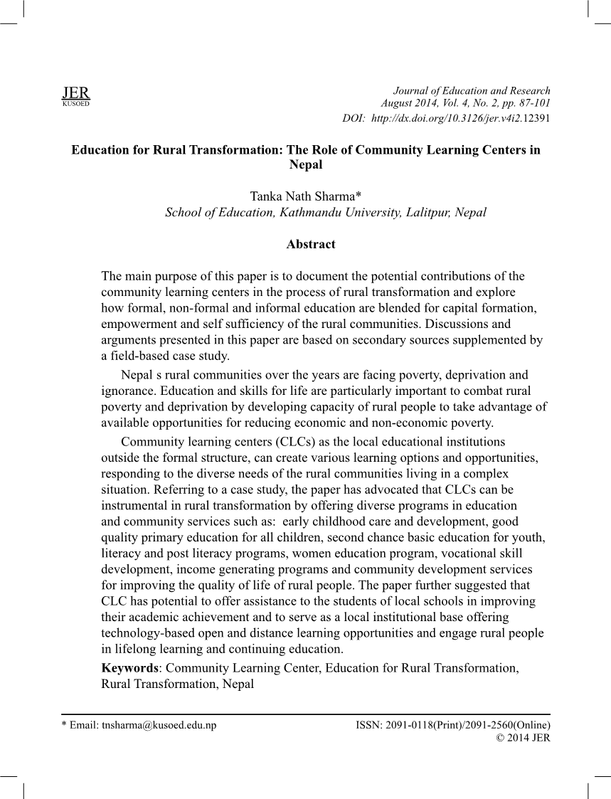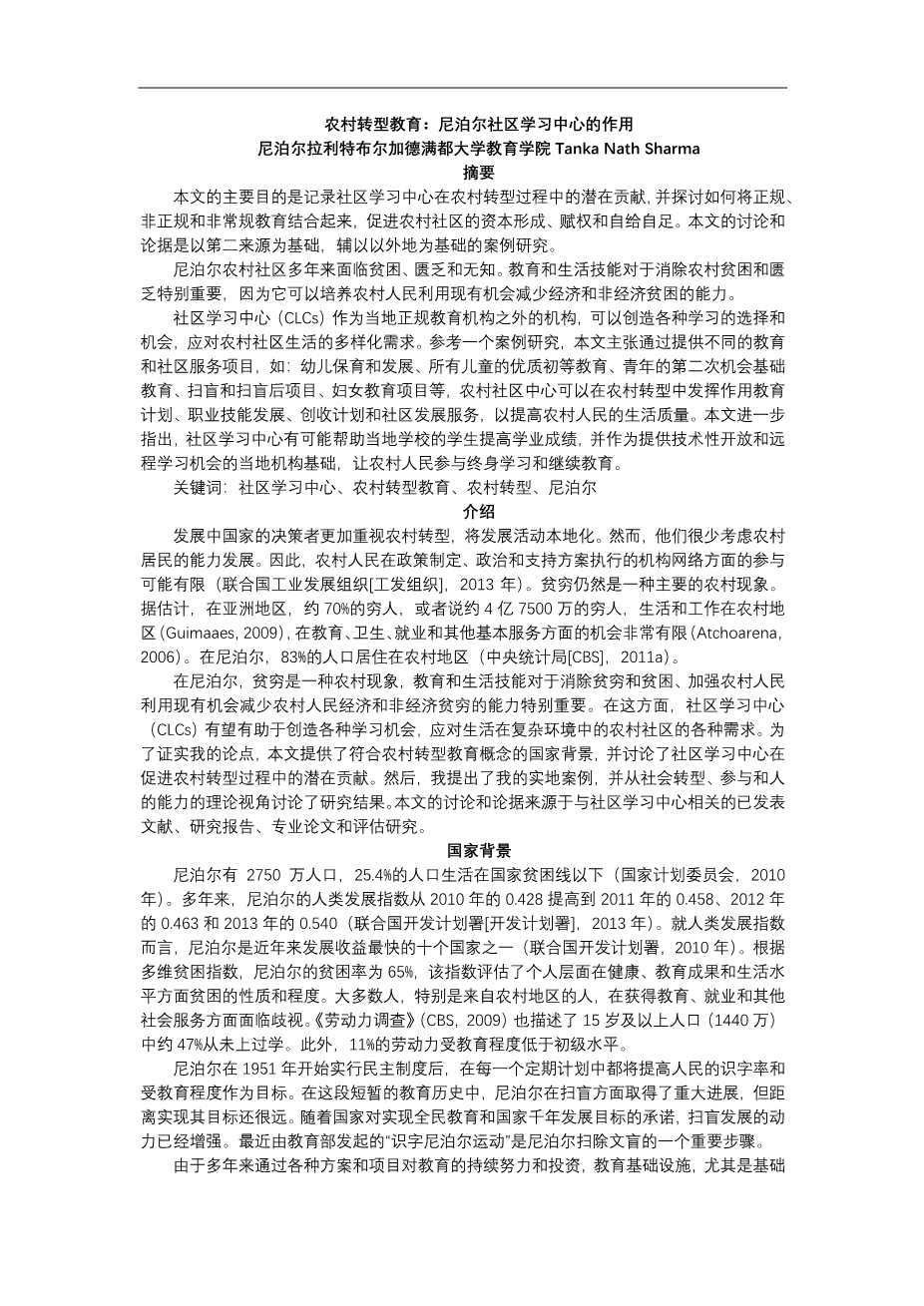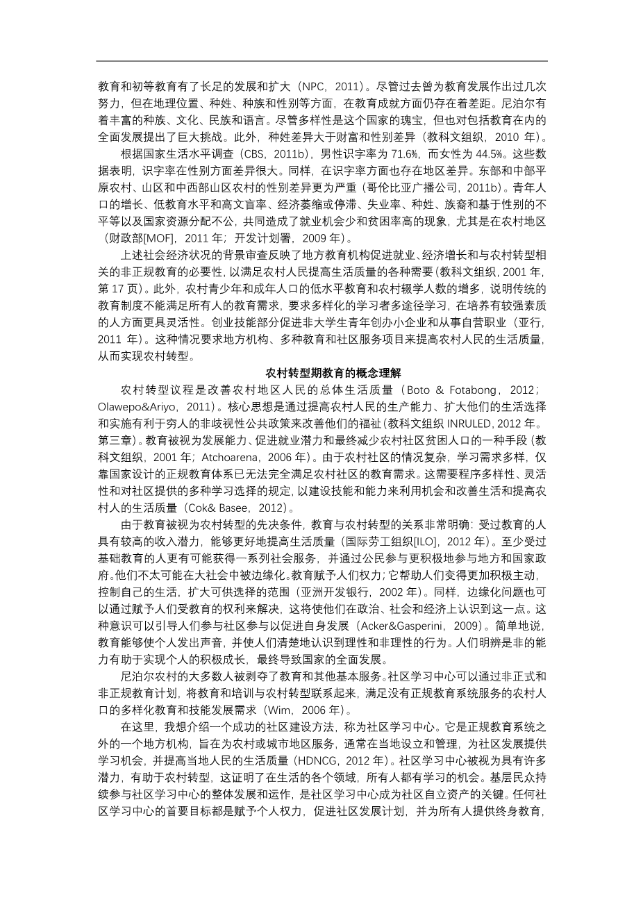 农村转型教育:尼泊尔社区学习中心的作用外文翻译资料